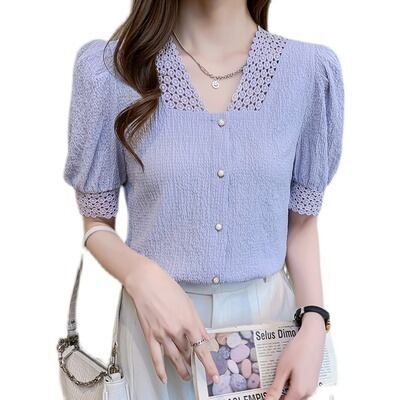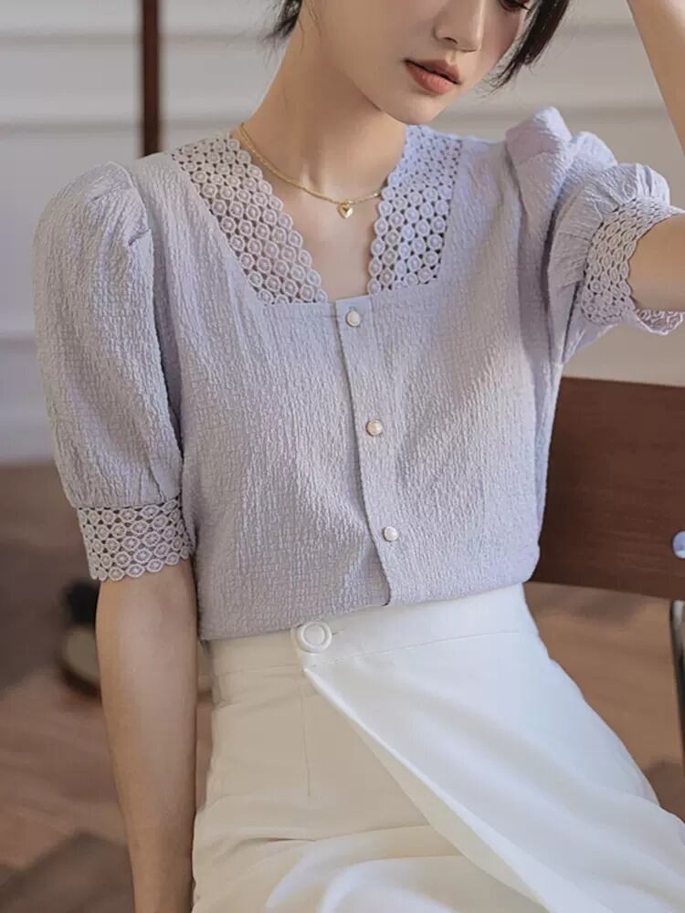 ブラウス 袖あり 半袖 Vネック レース エンボス かわいい 大人可愛い きれいめ 上品 おしゃれ お洒落 大人可愛い 大人女子 こなれ感 ラブリー キュート ガーリー エレガント フォーマル 抜け感 フェミニン 春 夏 10代 20代 30代 レディース 女の子 オフィス OL 通勤 学生 デート お出かけ 女子会 休日 パーティー イベント 旅行 ママコーデ 着回し 韓国 オルチャン コーデ モテ トレンド 紫 パープル ベージュ 送料無料【AR0006】