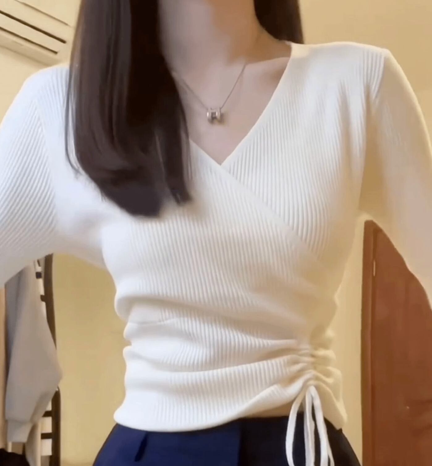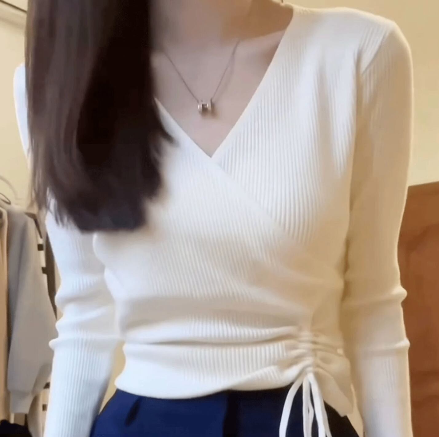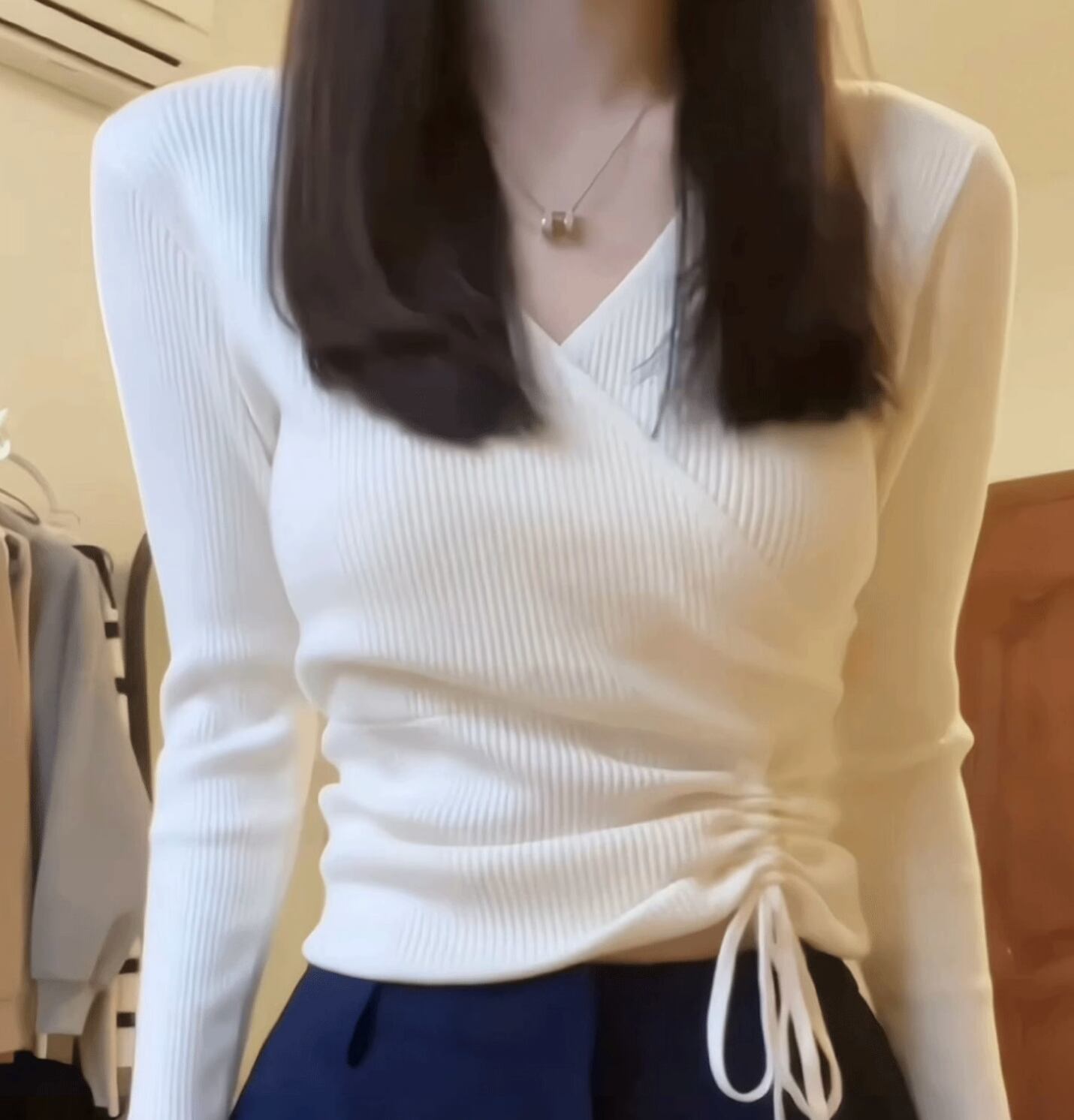 レディース トップス カットソー ニット セーター プルオーバー ショート 長袖 Vネック 襟なし ノーカラー タイト スリム 細身 リボン ウエストマーク ウエストリボン ハイウエスト リブニット ニット リブニット かわいい 大人可愛い きれいめ シンプル カジュアル こなれ感 ラフ ガーリー ルーズ 主役級 存在感 抜け感 ラブリー キュート 無地 春 夏 秋 学生 学校 通学 デート お出かけ 女子会 休日 合コン 韓国 オルチャン コーデ 普段使い 着回し モテ S M L XL 白 ホワイト