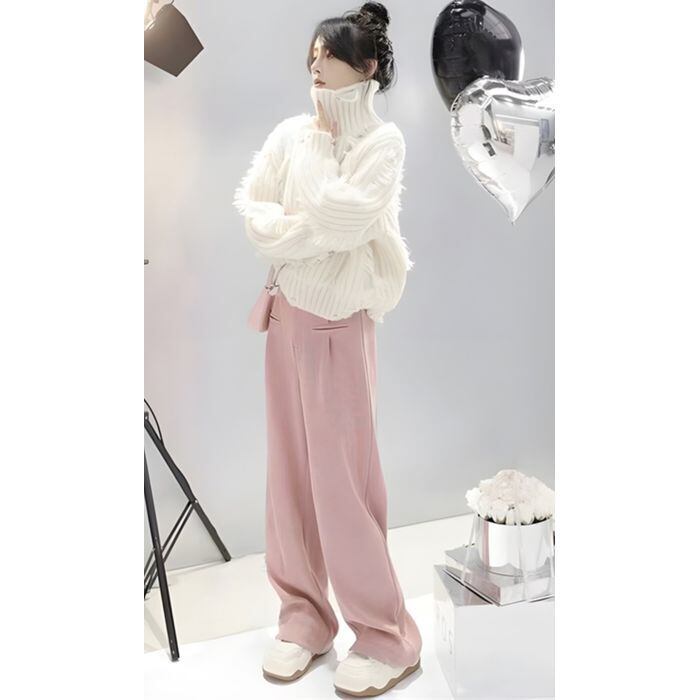 タートルネックやフリンジ、ダメージデザインなど、トレンド感のあるディテールが魅力です。