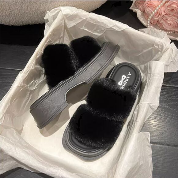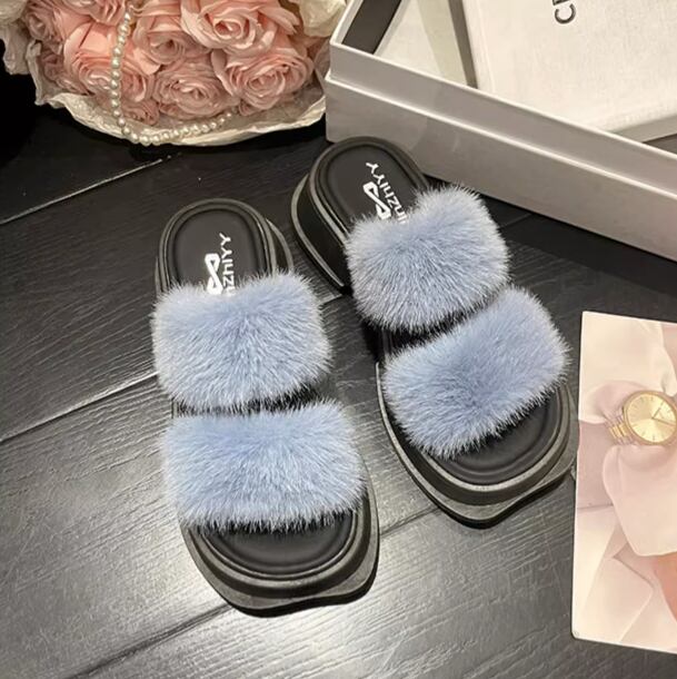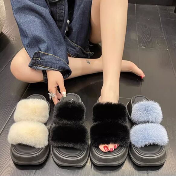 靴 シューズ サンダル ミュール スリッパ 5cm ミドルヒール 厚底 マフィンヒール もこもこ ふわふわ 幅広 ファー ボア かわいい 大人可愛い カジュアル おしゃれ ラブリー キュート ガーリー マニッシュ 主役級 存在感 華やか フェミニン スタイリッシュ 無地 夏 オフィス OL 通勤 デート お出かけ リゾート 旅行 休日 デイリー 普段使い コーデ スタイル 格上げ モテ 22.5cm 23.0cm 23.5cm 24.0cm 24.5cm 25.0cm 黒 青 ブラック ブルー ベージュ