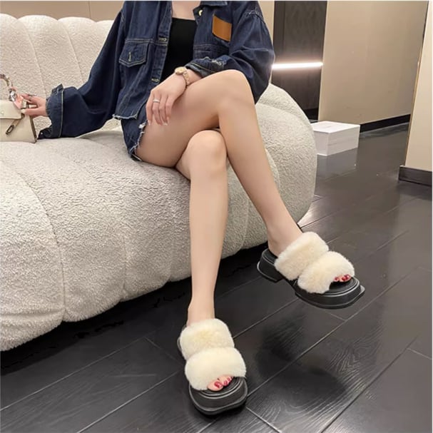 デイリーにぴったりの大人可愛いスリッポン。ふわふわのボア素材と5cmのマフィンヒールが特徴です。カジュアルながらもおしゃれなスタイルを演出し、オフィスや休日のお出かけにも最適。ベージュや黒、ブルーのカラーで、幅広いコーディネートにマッチします。