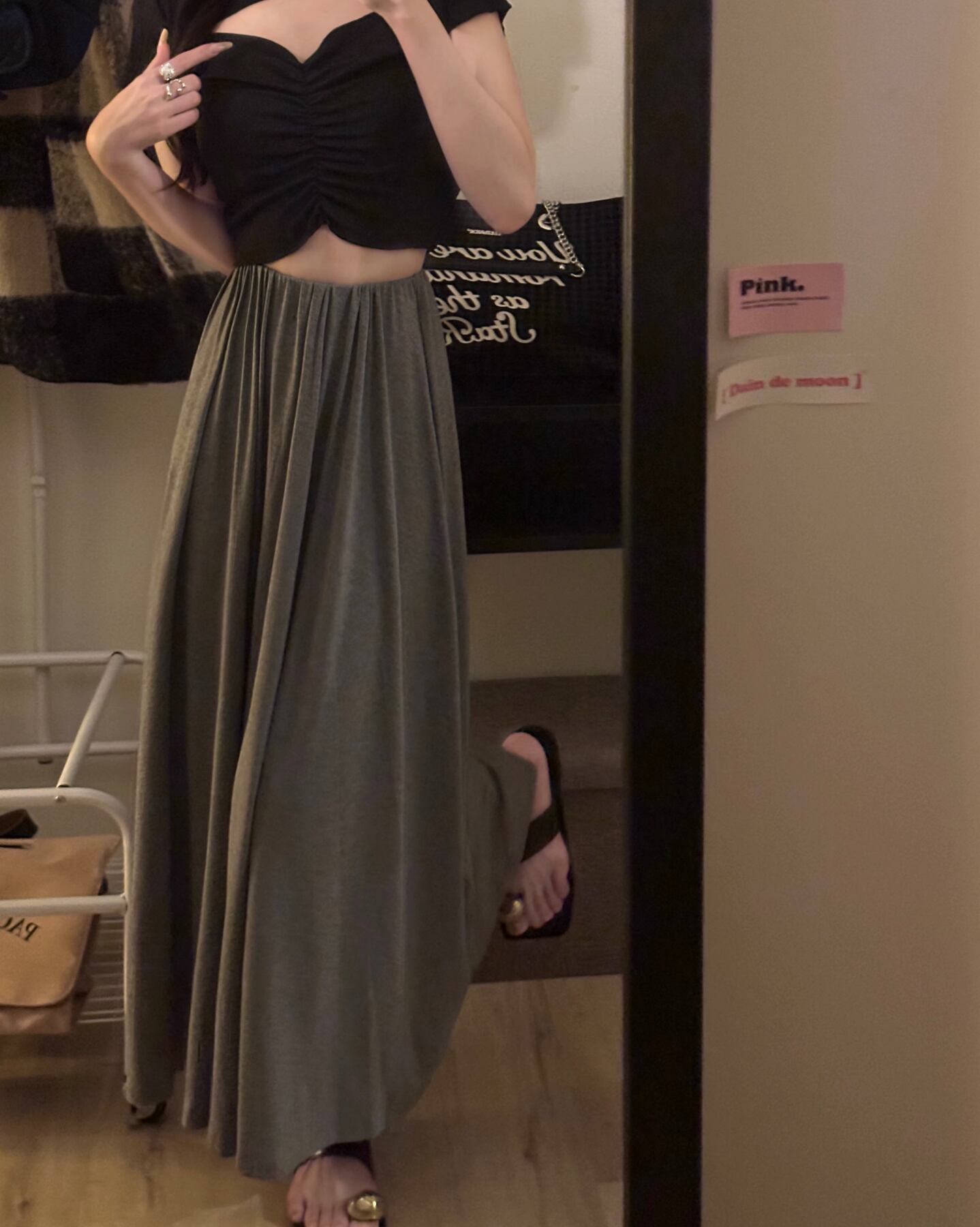 レディース スカート フレア フレアスカート ロングスカート ミモレ ロング ワイド フレア Aライン ハイウエスト ウエストゴム 伸縮性 かわいい 大人可愛い シンプル カジュアル おしゃれ レトロ アジアン エスニック エキゾチック こなれ感 ラフ ルーズ クール 無地 春 夏 秋 学生 学校 通学 お出かけ リゾート 旅行 海 休日 ショッピング コーデ 楽ちん 体型カバー 脚長 普段使い 着回し 定番 ゆったり ゆる フリーサイズ ワンサイズ 黒 ブラック ライトグレー ダークグレー アースカラー
