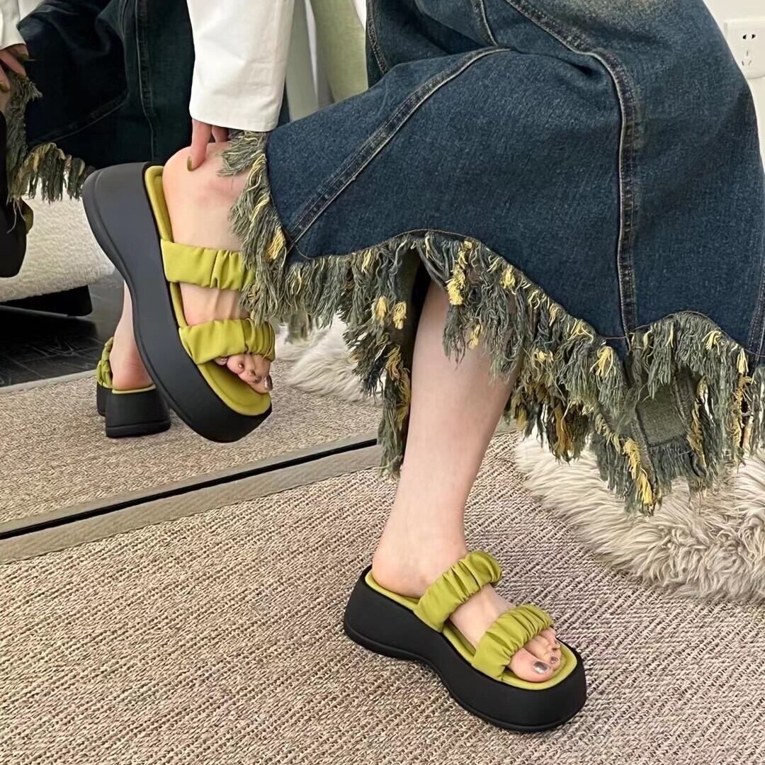 靴 シューズ サンダル 厚底サンダル ビーチサンダル ホワイト 白 ブラック 黒 グリーン 緑 夏 ラバー 無地 ハイヒール ミドルヒール レディース スリッポン ミュール 厚底 6cm もこもこ 厚手 かわいい 大人可愛い シンプル カジュアル おしゃれ レトロ ラブリー キュート ガーリー ルーズ 存在感 こなれ感 抜け感 スタイリッシュ オフィス OL 通勤 デート お出かけ リゾート 旅行 海 プール 普段使い コーデ モテ 22.5cm 23.0cm 23.5cm 24.0cm 24.5cm