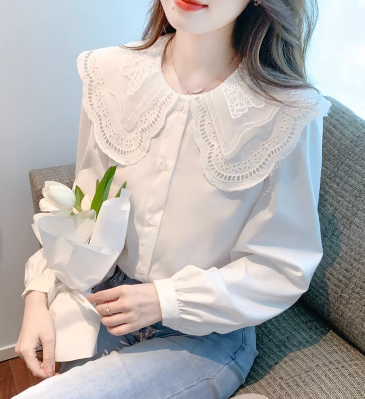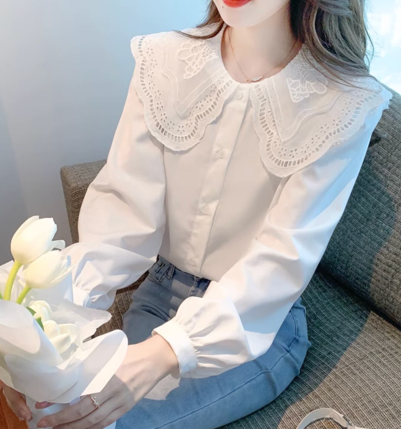 レースのビッグカラーがおしゃれポイント◎