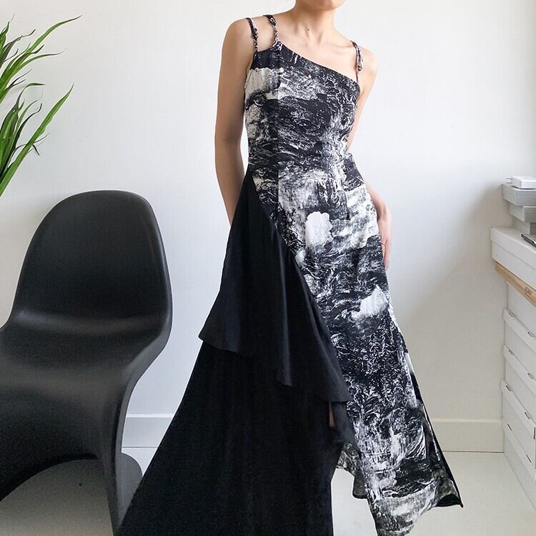 ワンピース ロングワンピース ワンピドレス ロングスカート サスペンダードレス ワードスカート ノースリーブ ハイウエスト プルオーバー 夏 アシメントリー レディース スカート ロング 袖なし 襟なし かわいい 大人可愛い きれいめ おしゃれ こなれ感 ラフ マニッシュ ルーズ 個性的 クール モード系 モダン 主役級 存在感 ラグジュアリー ワイルド 発表会 オフィス OL パーティー イベント リゾート 旅行 バカンス 発表会 コーデ モテ トレンド 流行 インスタ映え S M L 黒 ブラック