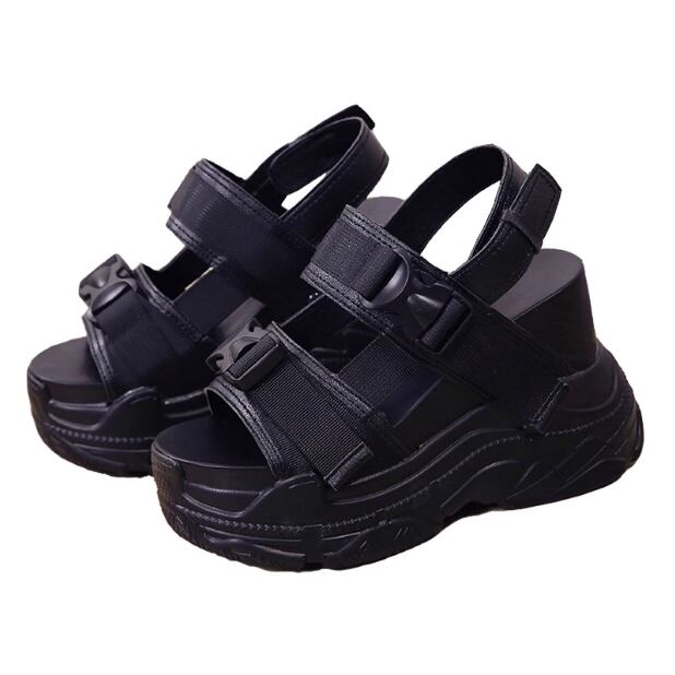 春夏の足元に映える厚底サンダルです。カジュアルからおしゃれまで、あらゆるスタイルにぴったりなシンプルカラーがポイント。自分らしいスタイルを楽しみたい方におすすめのアイテムです。