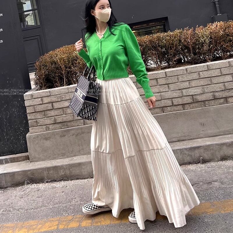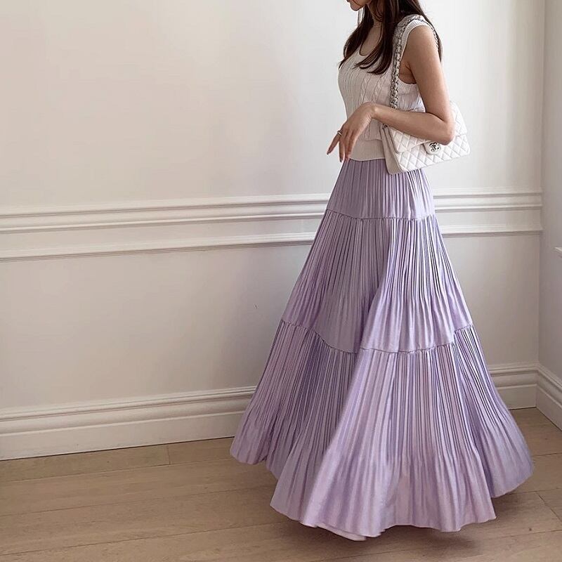 シフォン素材の上品な光沢と軽やかな風合いが、春夏の季節感を引き立てます。無地なので幅広いトップスとのコーディネートが楽しめ、デートやお出かけなど、様々な場面で活躍します。