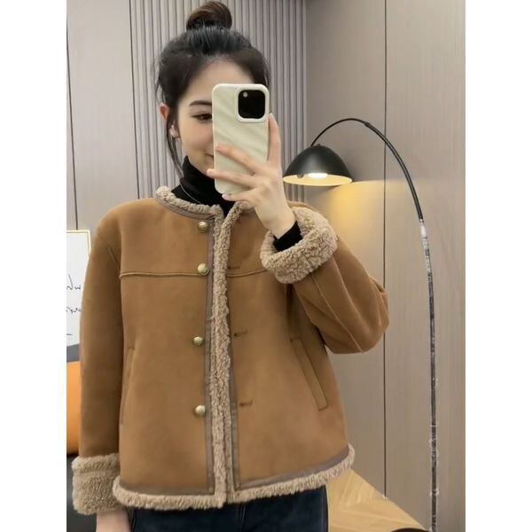 アウター ジャケット ノーカラージャケット ボア フロントボタン 長袖 冬 ブラウン 茶色 コート 袖あり 襟なし ワイド かわいい 大人可愛い カジュアル 大人 おしゃれ お洒落 レトロ 大人女子 ラフ ボーイッシュ スポーティー キュート ガーリー 10代 20代 レディース 女性用 女の子 オフィス OL 学生 通学 お出かけ 休日 普段使い ファッション コーデ スタイル モテ S M L XL