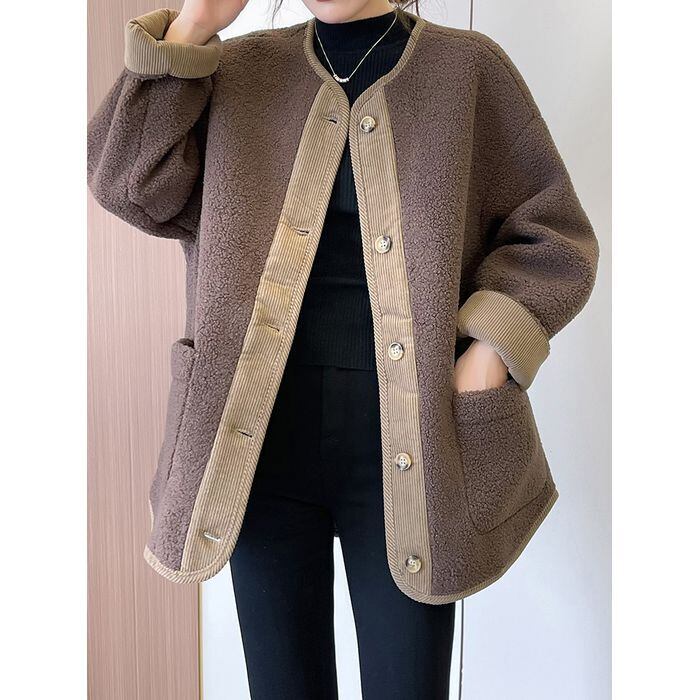 アウター ジャケット ノーカラージャケット ボア フロントボタン 長袖 冬 コート 袖あり 襟なし ワイド かわいい 大人可愛い カジュアル 大人 おしゃれ お洒落 レトロ 大人女子 ラフ ボーイッシュ スポーティー キュート ガーリー 10代 20代 レディース 女性用 女の子 オフィス OL 学生 通学 お出かけ 休日 普段使い ファッション コーデ スタイル モテ S M L XL 2XL ブラウン ホワイト パープル