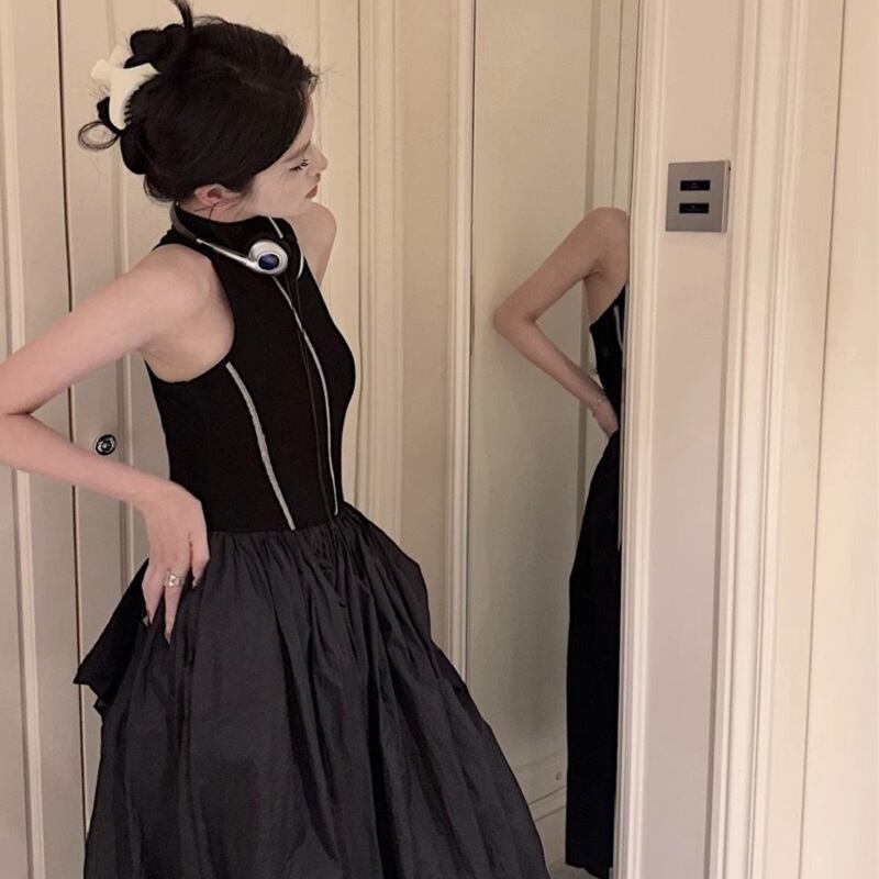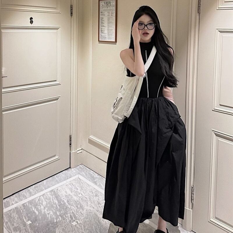 レディース ワンピース スカート ミモレ ノースリーブ タートルネック Aライン バルーン ハイウエスト 大人可愛い きれいめ カジュアル 上品 おしゃれ アジアン エキゾチック こなれ感 個性的 クール エレガント 主役級 存在感 抜け感 春 夏 秋 誕生日 OL デート お出かけ お泊まり パーティー イベント リゾート 旅行 女子会 休日 バカンス ホテル ショッピング 発表会 オルチャン 楽ちん プレゼント 美脚 脚長 モテ インスタ映え フリーサイズ ブラック