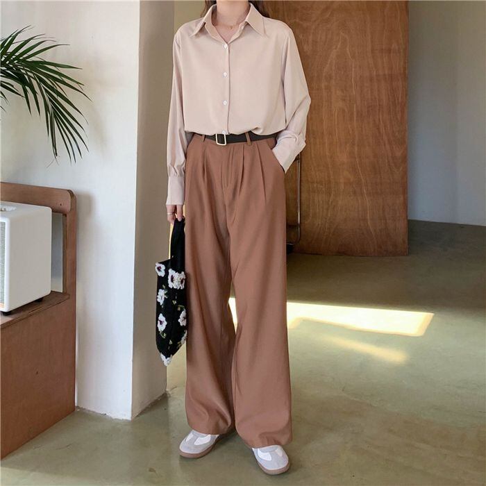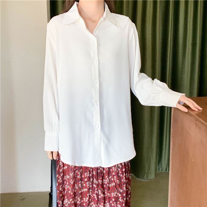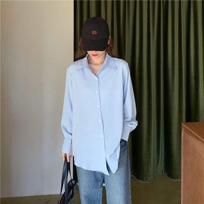 トップス シャツ ブラウス 長袖 襟付き シフォン 大人可愛い シンプル カジュアル 大人 上品 おしゃれ かっこいい 大人女子 無地 春 秋 20代 30代 40代 レディース ママ オフィス ビジネス OL 通勤 通学 お出かけ 休日 デート イベント 女子会 着回し 普段使い 韓国系 ファッション スタイル ゆったり 着痩せ 体系カバー 楽ちん 清潔感 フリーサイズ ワンサイズ ブルー ホワイト ベージュ ブラウン ブラック