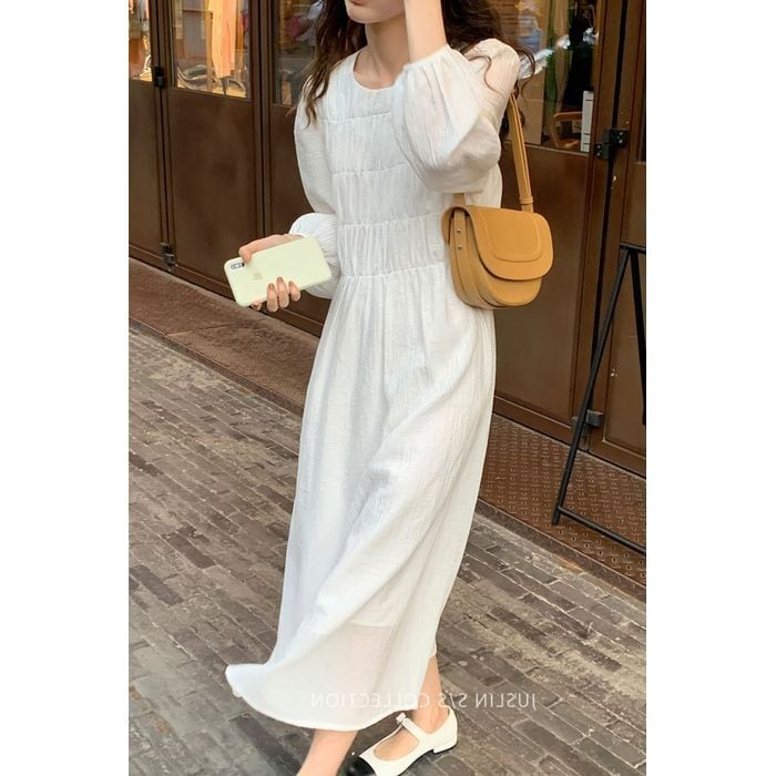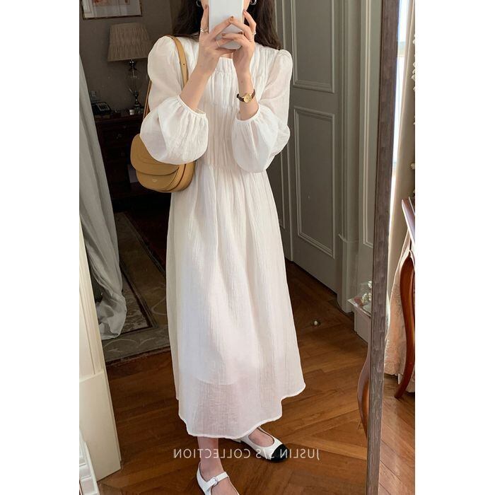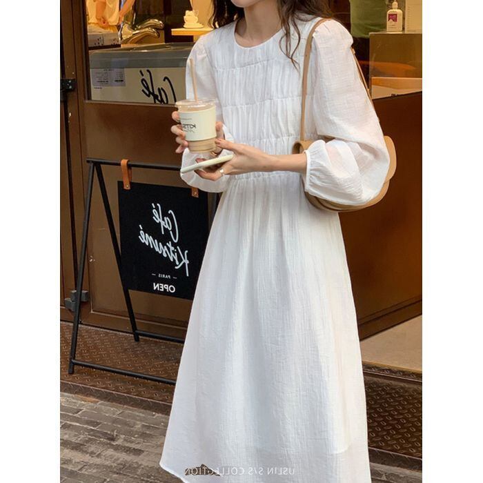 レディース ワンピース ロング 長袖 シャーリング ラウンドネック ノーカラー ウエストマーク ゆったり かわいい 大人可愛い きれいめ シンプル カジュアル 上品 おしゃれ こなれ感 ラフ 存在感 抜け感 無地 春 夏 秋 通勤 学生 デート お出かけ お泊まり パーティー イベント リゾート 旅行 レストラン 女子会 休日 バカンス 高原 ホテル ショッピング コンサート コーデ 楽ちん プレゼント 体型カバー 脚長 普段使い 着回し 流行 S M L ホワイト