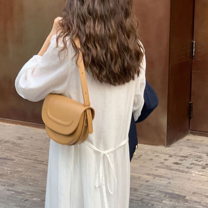 ゆったりとしたシルエットとラウンドネックのデザインが女性らしい雰囲気を演出します。