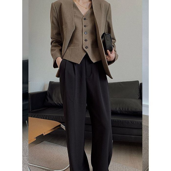 カットソーからブラウスなど着こなしの幅が広がるショート丈ベストです。