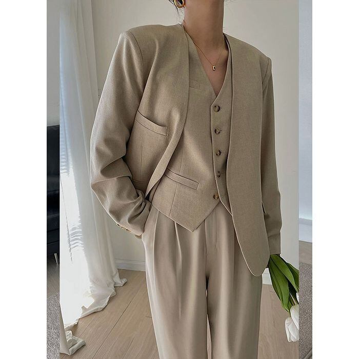レディース ジャケット ベスト 上着 ジレ 前開き ミニ ショート ノースリーブ Vネック 襟なし ノーカラー ワイド ストレート ポケット かわいい 大人可愛い きれいめ シンプル カジュアル 上品 おしゃれ かっこいい レトロ こなれ感 ラフ メンズライク マニッシュ ボーイッシュ ルーズ クール 抜け感 無地 春 夏 秋 オフィス ビジネス OL 通勤 学生 学校 通学 お出かけ アウトドア キャンプ 休日 ショッピング フェス 重ね着 コーデ 普段使い 着回し S M L XL ベージュ ブラウン
