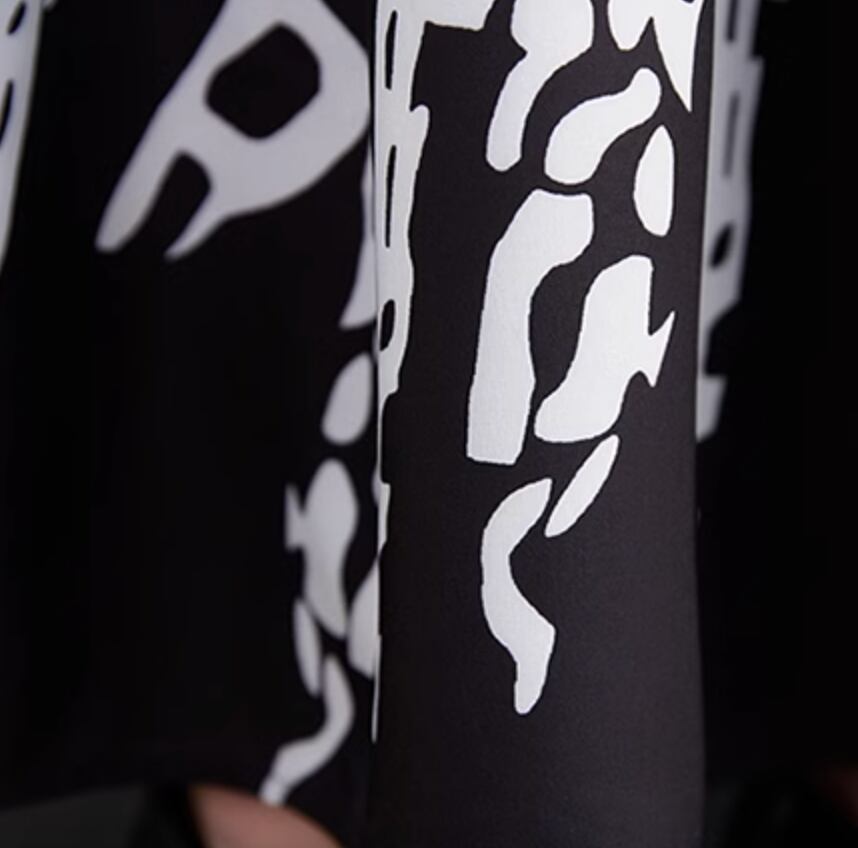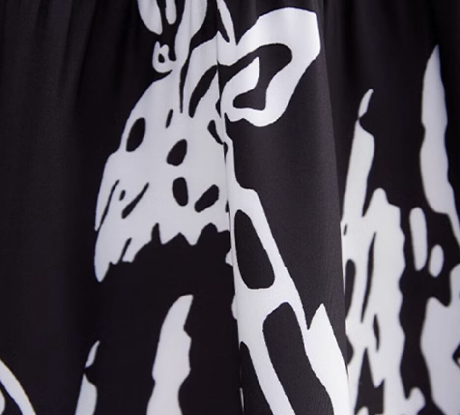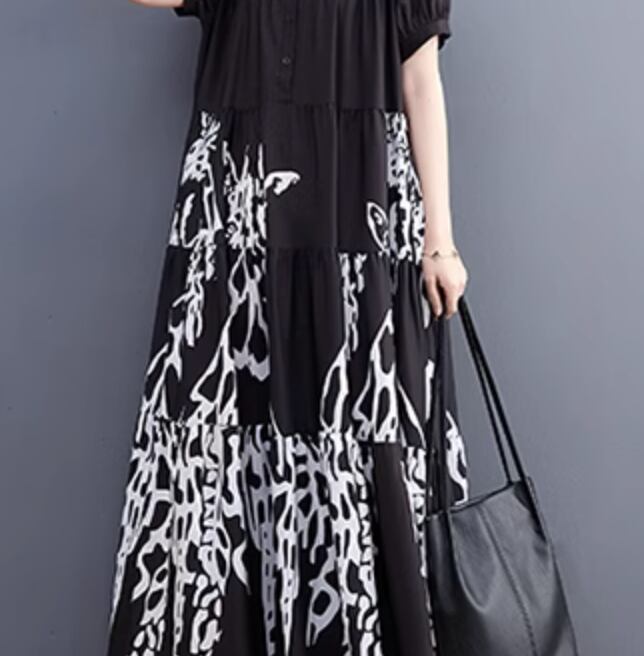 麒麟を思わせるアートなモノトーンプリントがお洒落なロング丈ワンピースです。