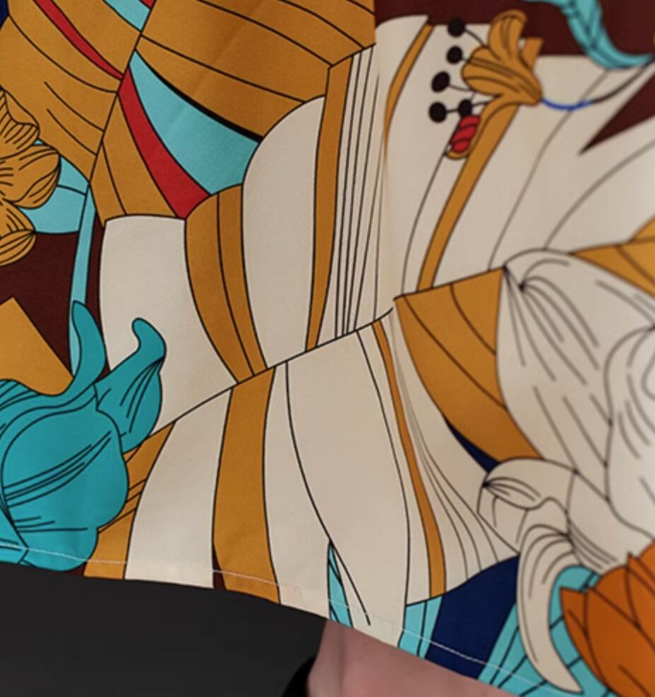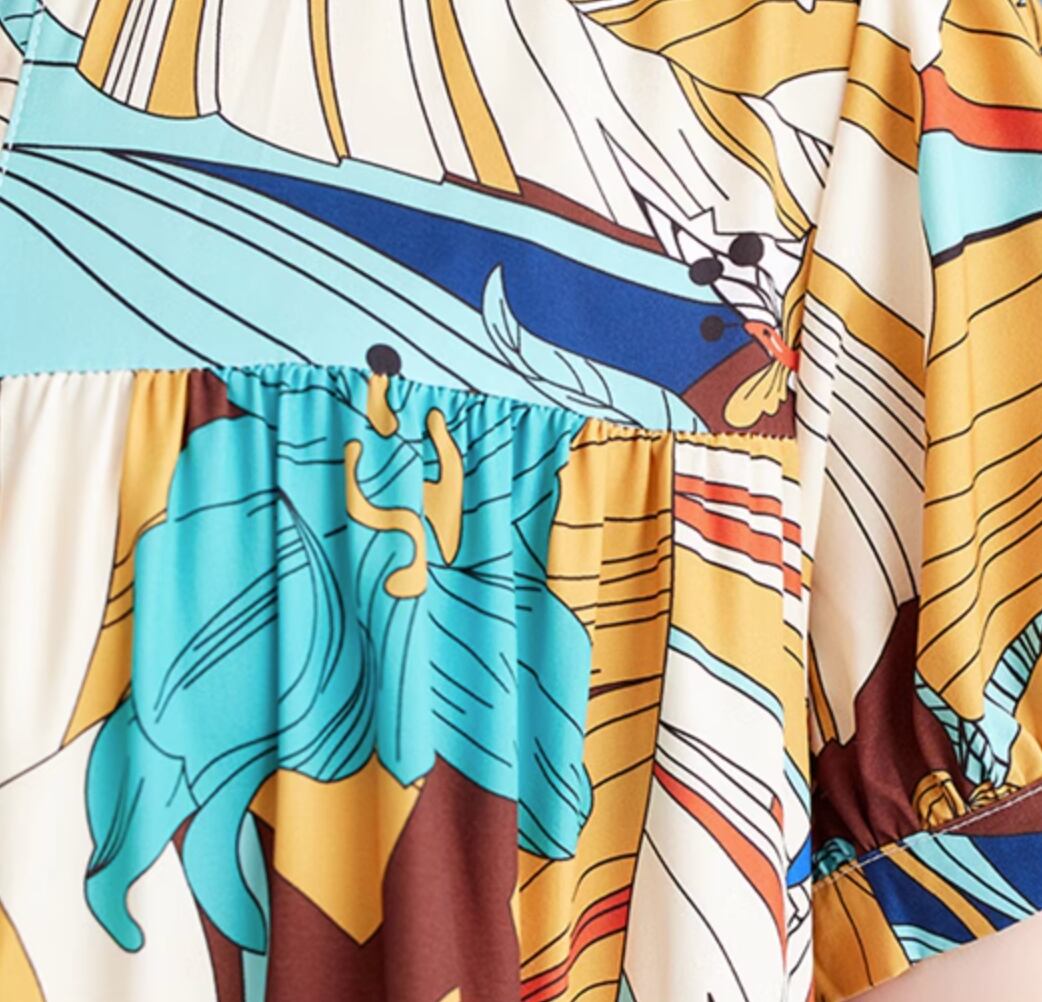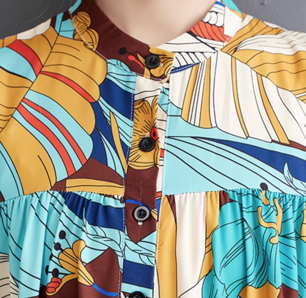 インパクトのある総柄が個性的!ゆったり着られて体型カバーも◎シフォン素材で上品さもプラスされたロング丈ワンピースです。