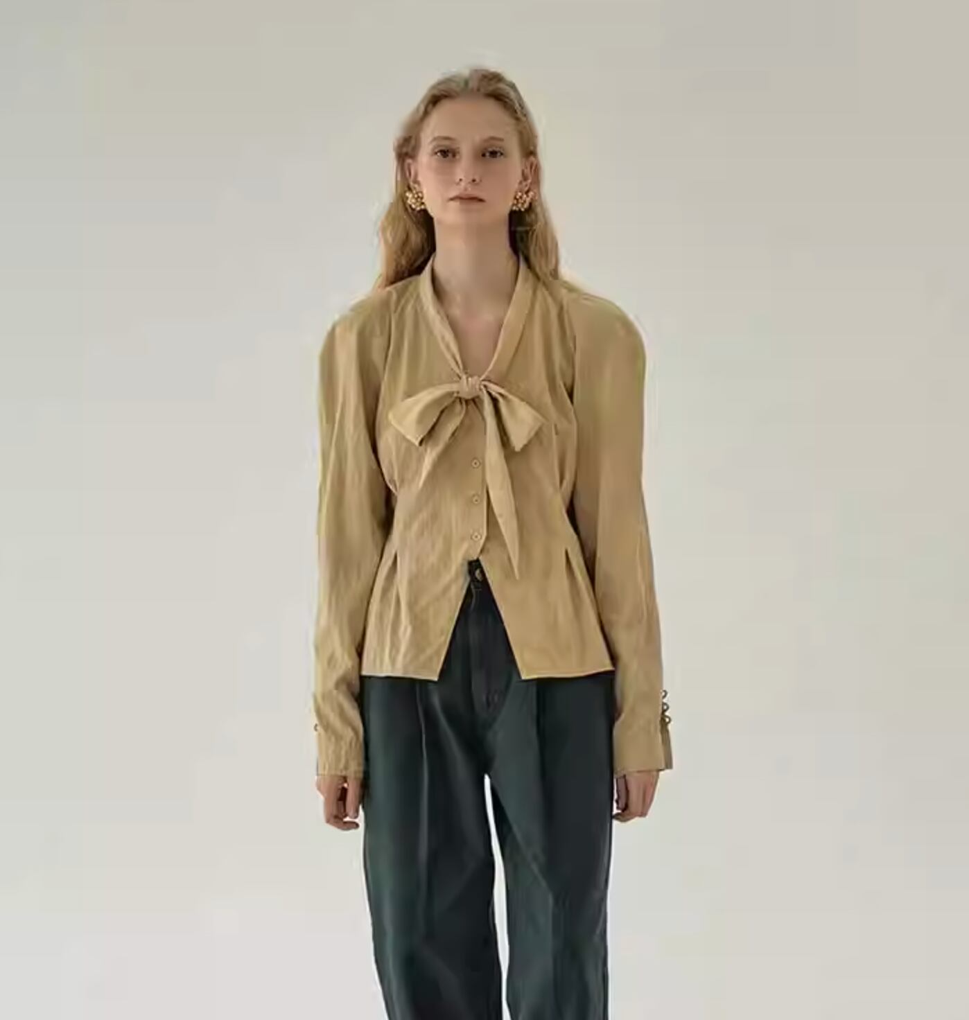 さり気なくフェミニンさがプラスできるお洒落ブラウスです。
