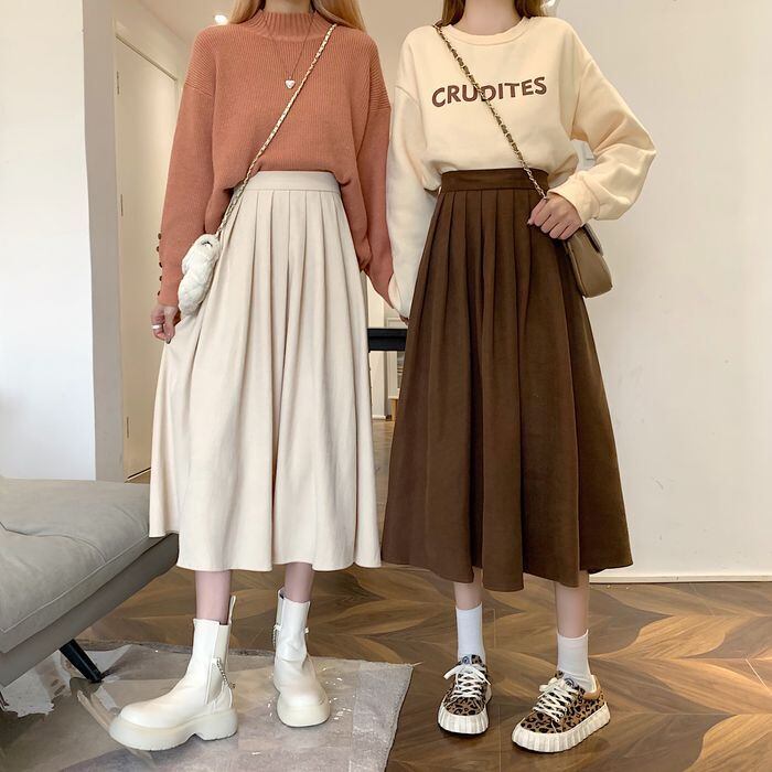 スカート カレッジスタイル プリーツスカート ミモレ丈 膝下丈 ハイウエスト 無地 春 秋 Aライン レディース ボトムス ミモレ プリーツ かわいい 大人可愛い シンプル カジュアル おしゃれ レトロ こなれ感 スポーティー ガーリー 個性的 クール エレガント 存在感 ラブリー キュート カレッジ風 学生風 オフィス OL 学生 学校 通学 デート イベント 女子会 コーデ 普段使い 着回し モテ 清楚 トレンド S M L ブルー ホワイト ベージュ ブラウン ブラック