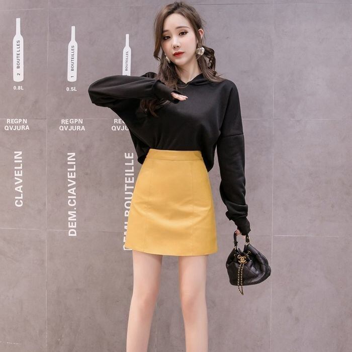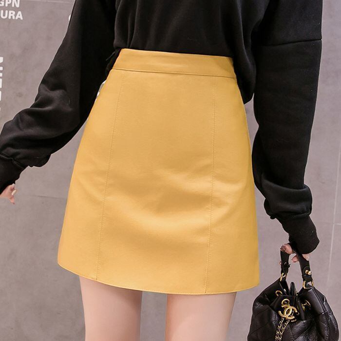 スカート ミニスカート PUレザー ミニ ミニ丈 ショート ショート丈 ハイウエスト Aライン 可愛い かわいい シンプル カジュアル おしゃれ お洒落 こなれ感 ラブリー キュート ガーリー フェニミン レトロ 無地 春 秋 10代 20代 女性用 学生 通学 デート 女子会 休日 ショッピング 着回し 普段使い 韓国 韓国系 オルチャン ファッション コーデ スタイル モテ トレンド 流行 美脚 S M L XL 2XL ブラック ブラウン ブルー イエロー