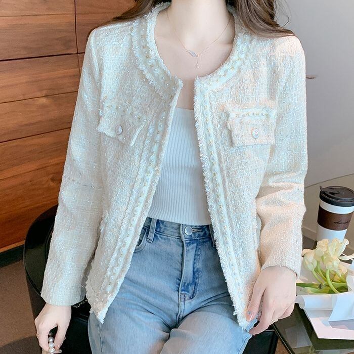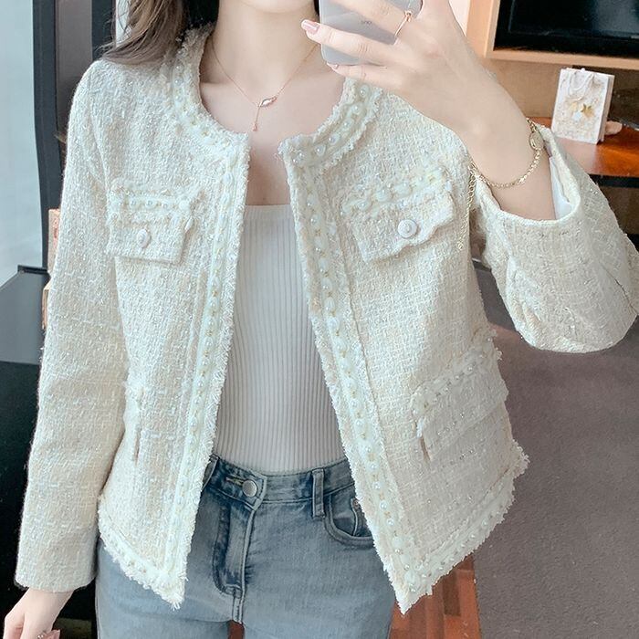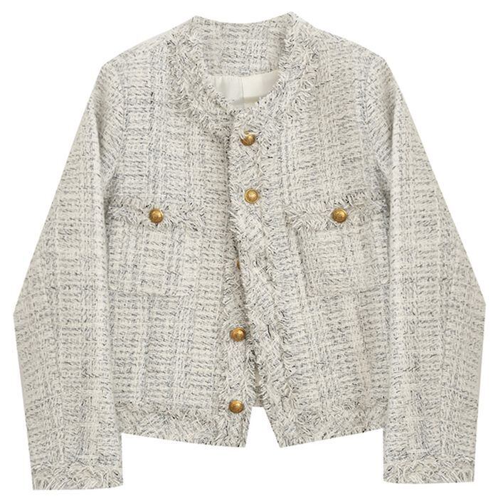 レディース アウター ジャケット ツイード 長袖 襟なし 大人可愛い きれいめ カジュアル おしゃれ こなれ感 ラフ 個性的 クール エレガント モダン 主役級 存在感 フォーマル 抜け感 無地 秋 冬 オフィス ビジネス OL 通勤 学生 デート お出かけ お泊まり パーティー イベント リゾート 旅行 レストラン 女子会 休日 バカンス ホテル ガーデン ショッピング 合コン コンパ カフェ オルチャン コーデ 楽ちん 暖かい プレゼント 普段使い インスタ映え S M L XL ホワイト