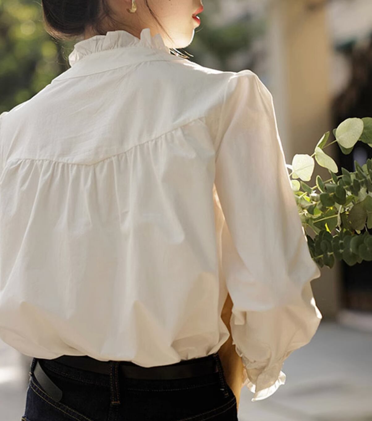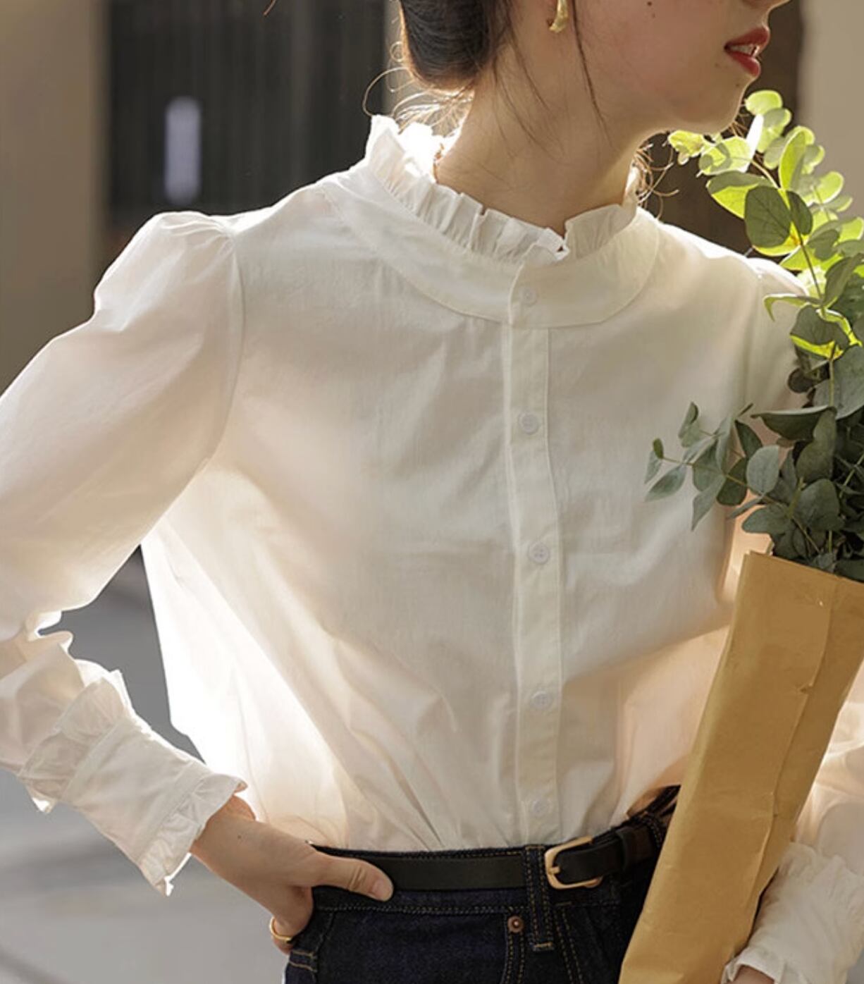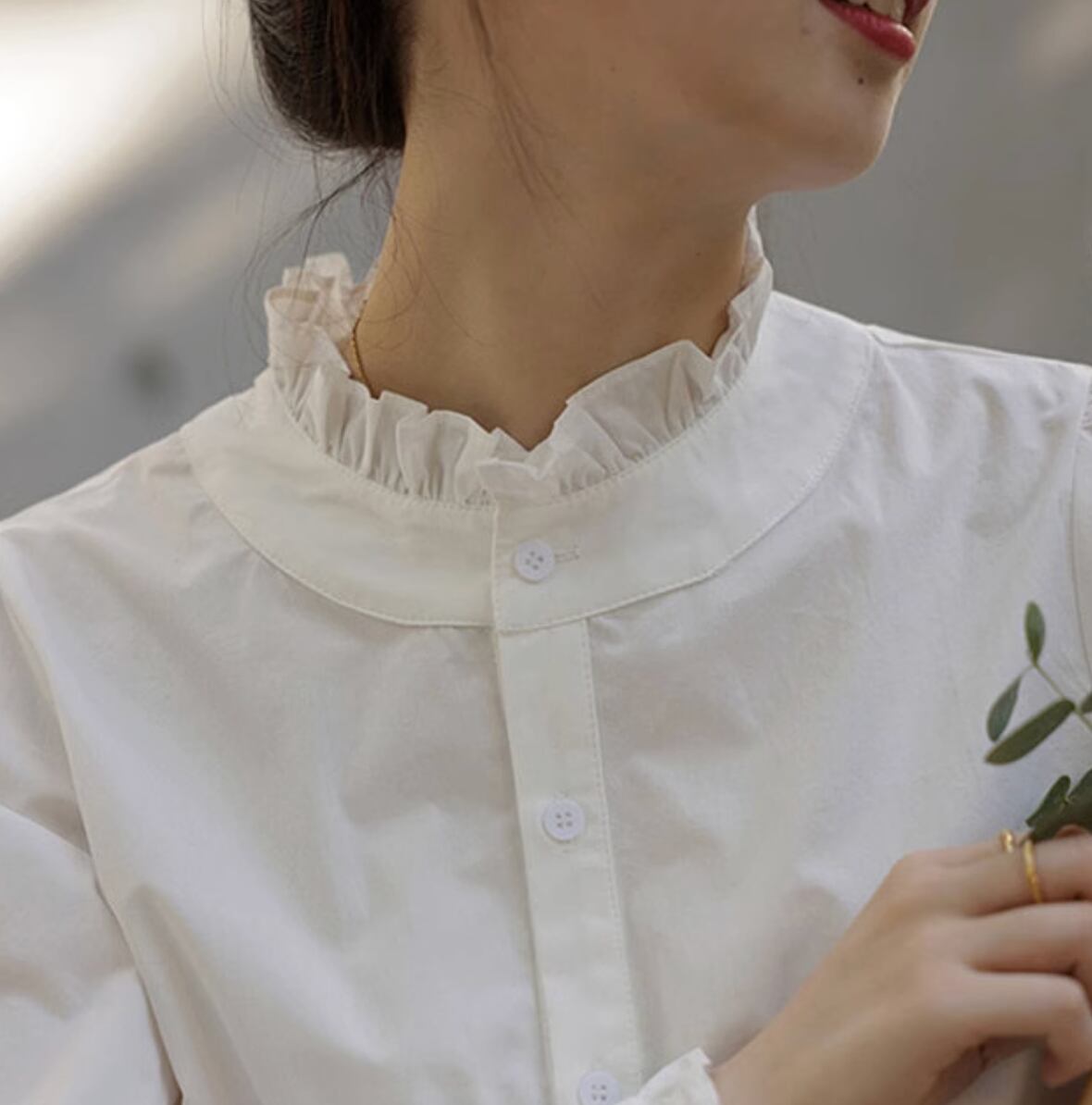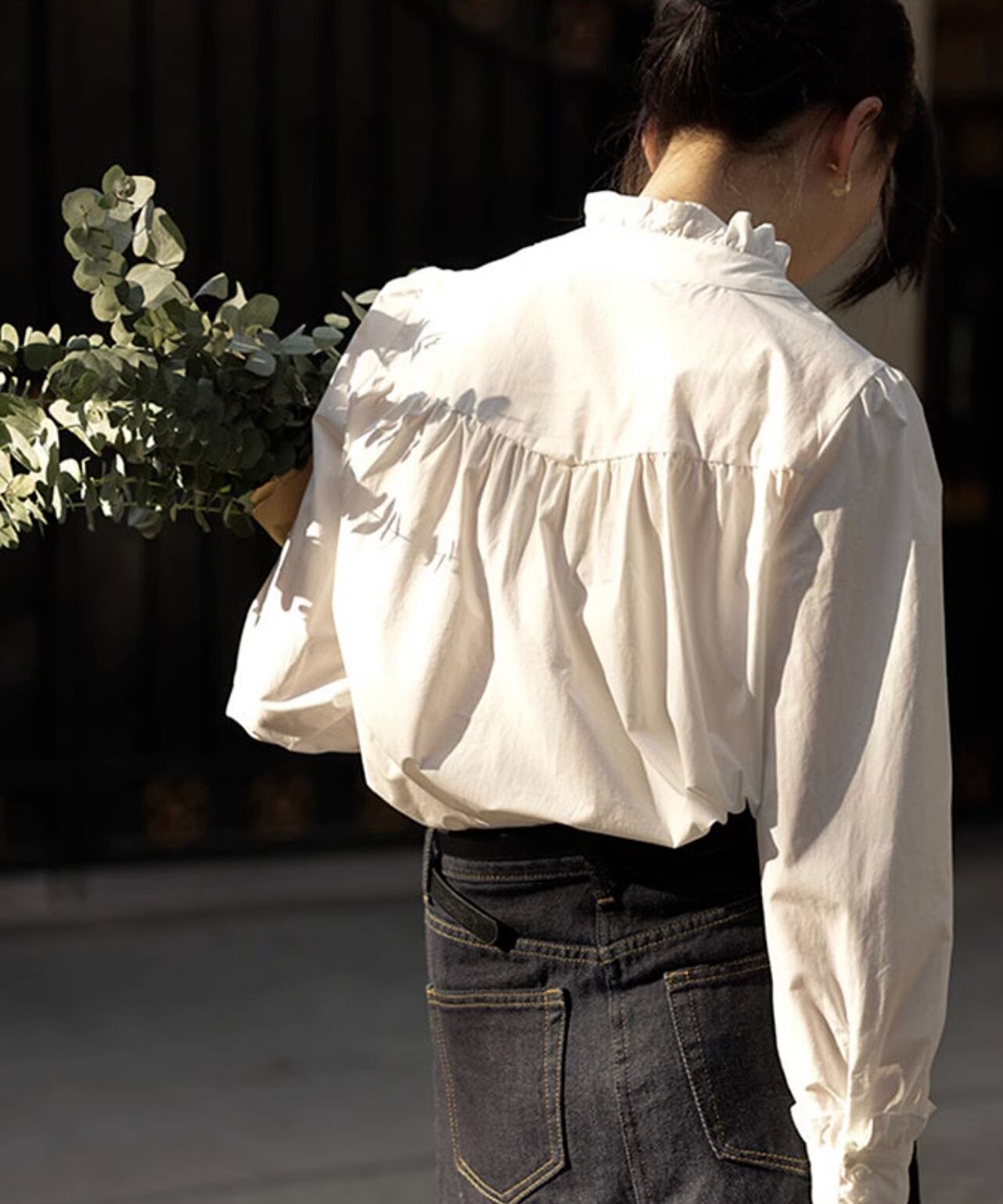 レディース トップス シャツ ブラウス ミディアム ミドル丈 長袖 フリル袖 襟なし ワイド ストレート 刺繍 フリル 前開き ヴィンテージ 綿 かわいい 大人可愛い きれいめ シンプル カジュアル 上品 おしゃれ レトロ こなれ感 ガーリー エレガント フォーマル 抜け感 ラブリー キュート クラシカル フェニミン 無地 春 夏 秋 オフィス ビジネス OL 通勤 学生 学校 通学 デート お出かけ 女子会 休日 ショッピング コーデ 体型カバー 普段使い 着回し モテ 清楚 ゆったり 白 ホワイト