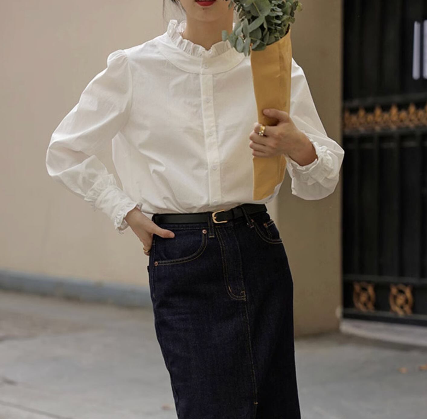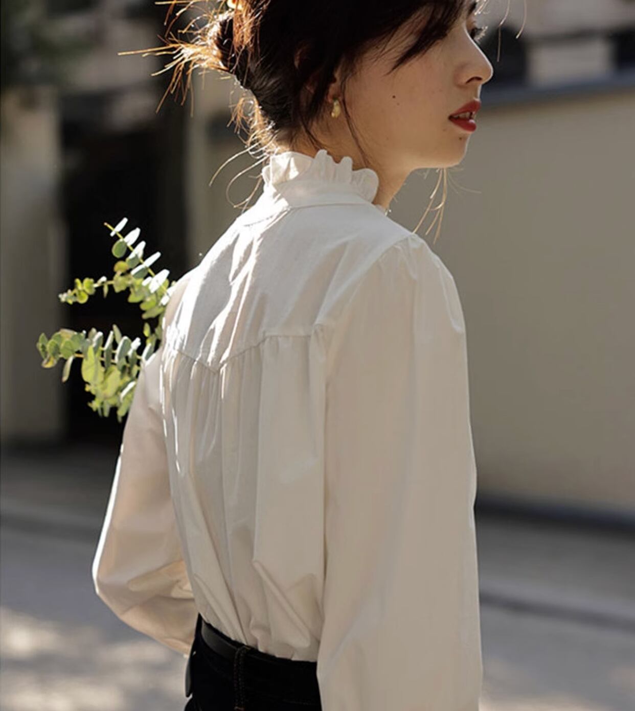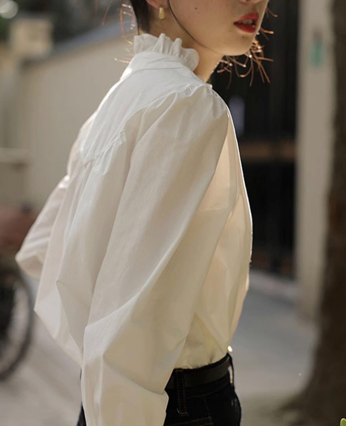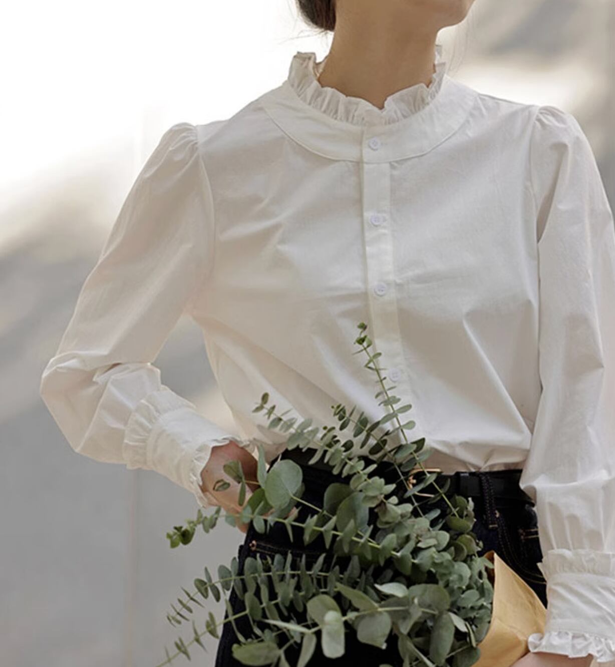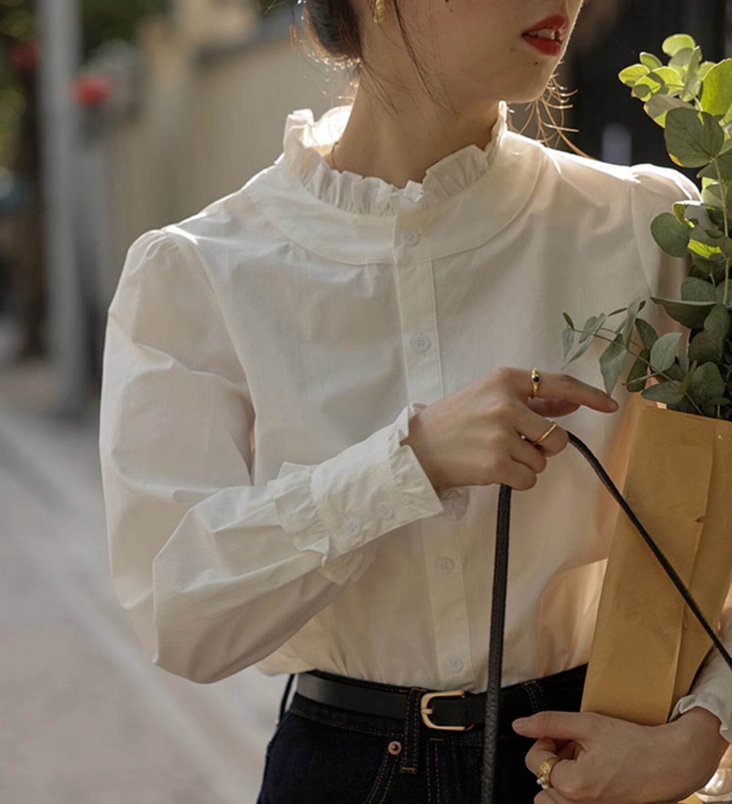 レディース トップス シャツ ブラウス ミディアム ミドル丈 長袖 フリル袖 襟なし ワイド ストレート 刺繍 フリル 前開き ヴィンテージ 綿 かわいい 大人可愛い きれいめ シンプル カジュアル 上品 おしゃれ レトロ こなれ感 ガーリー エレガント フォーマル 抜け感 ラブリー キュート クラシカル フェニミン 無地 春 夏 秋 オフィス ビジネス OL 通勤 学生 学校 通学 デート お出かけ 女子会 休日 ショッピング コーデ 体型カバー 普段使い 着回し モテ 清楚 ゆったり 白 ホワイト