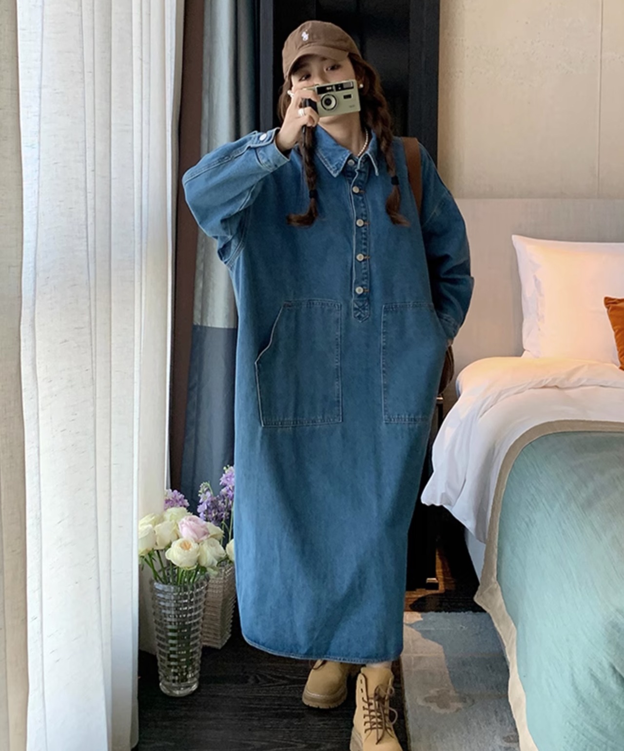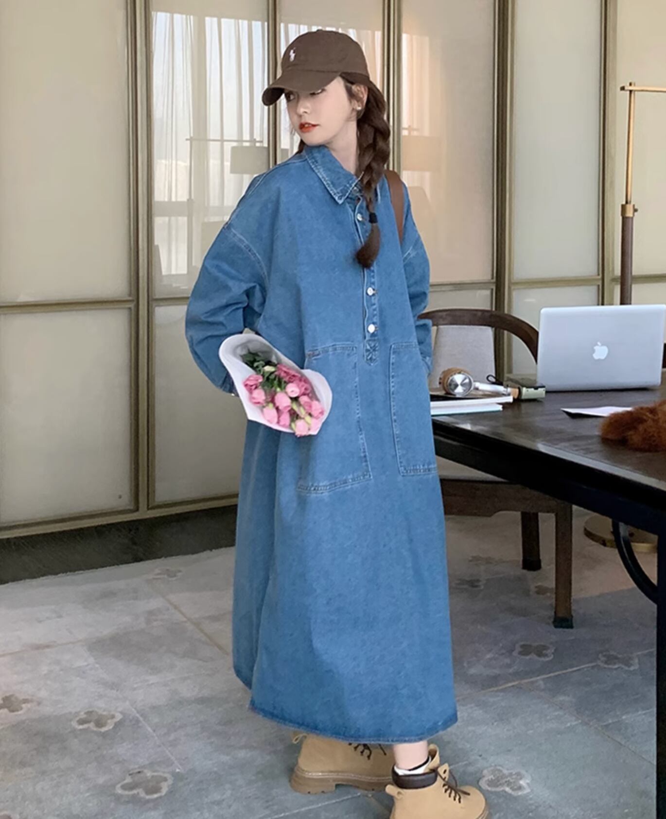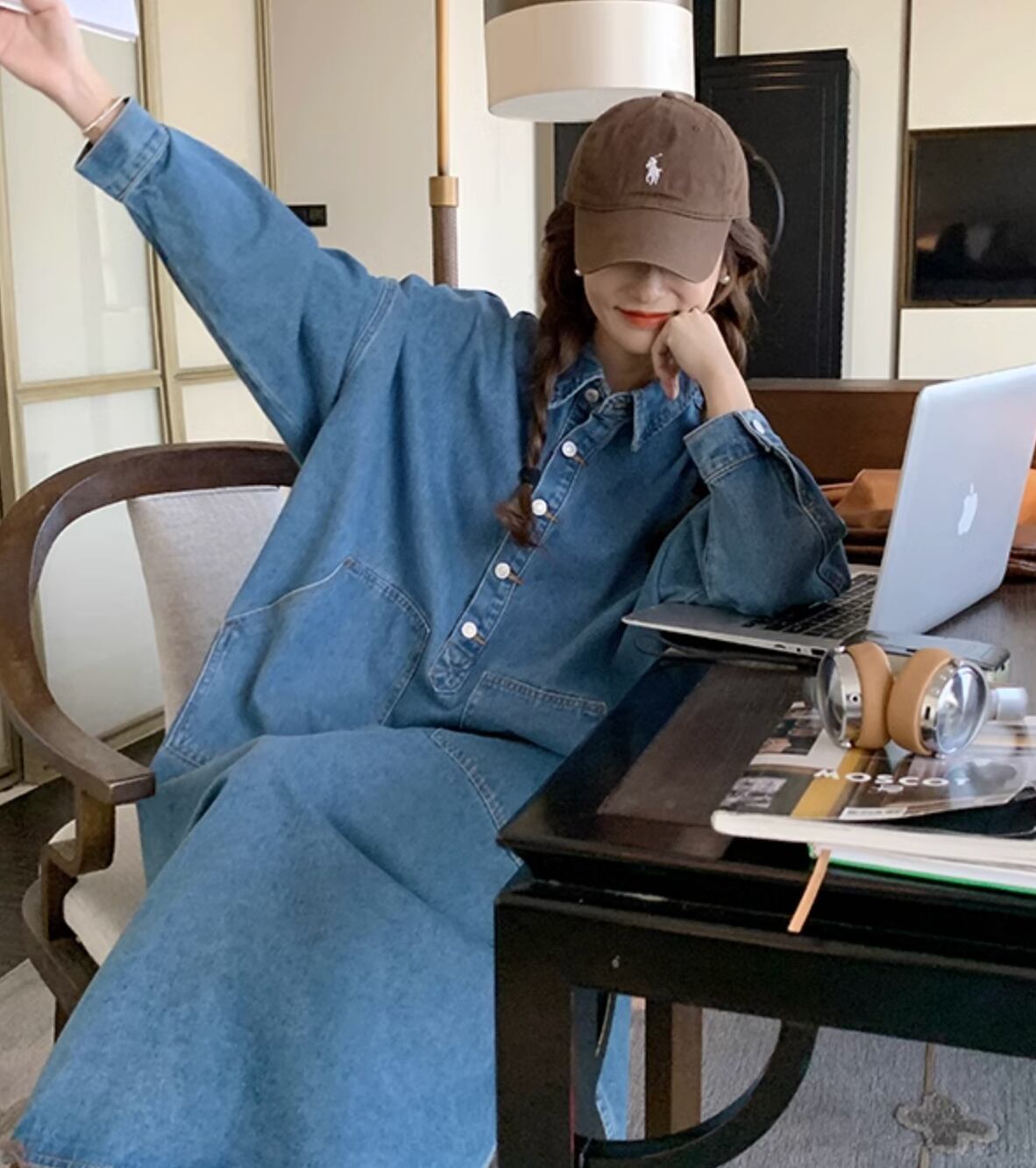 ゆったりとしたシルエットで体型カバーも◎春夏に大活躍のデニムワンピースです。