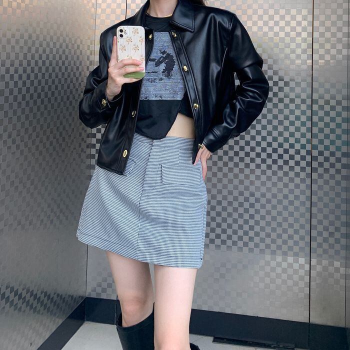 スカートにもデニムにも合わせやすいレザー調ジャケットです。