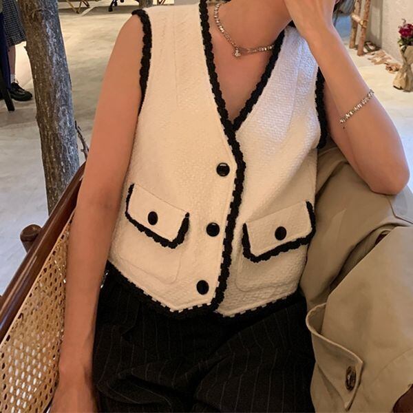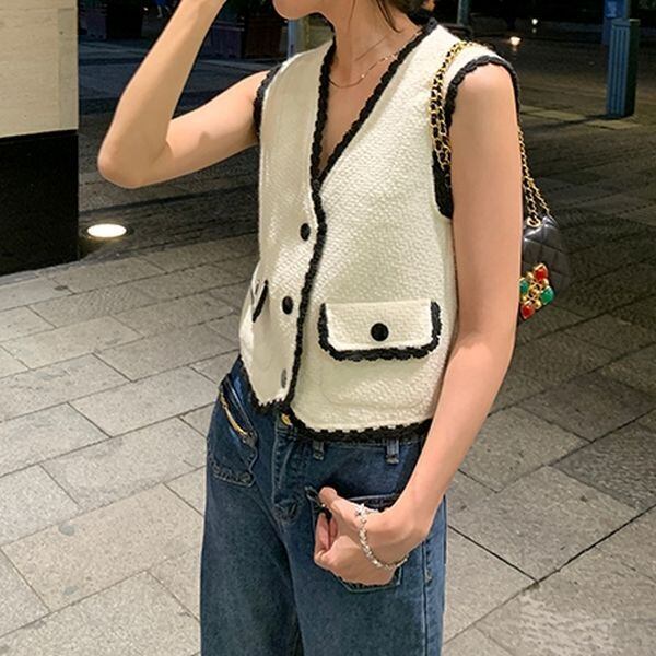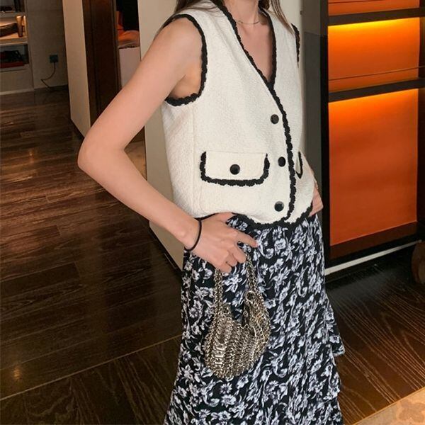 カットソーからブラウスなど着こなしの幅が広がるショート丈ベストです。