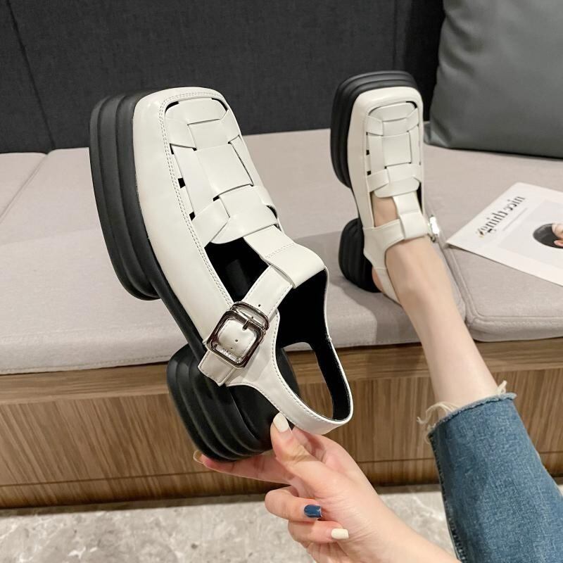 靴 シューズ サンダル 厚底 スクエアトゥ バックル ローマンシューズ 無地 ミドルヒール スクエアヘッド ワンワードバックル レジャー オフホワイト ラバー 夏 マイクロファイバーレザー レディース パンプス ローファー スポーツサンダル ストラップサンダル ビーチサンダル 4.5cm 脚長 かわいい 大人可愛い カジュアル おしゃれ ラブリー キュート ガーリー スポーティー スタイリッシュ オフィス ビジネス OL 通学 デート リゾート 海 23.0cm 23.5cm 24.0cm 24.5cm