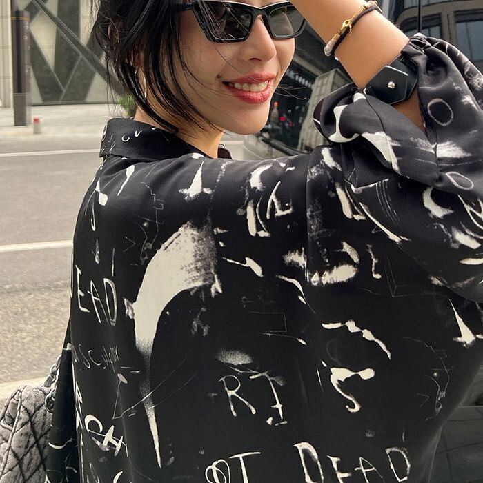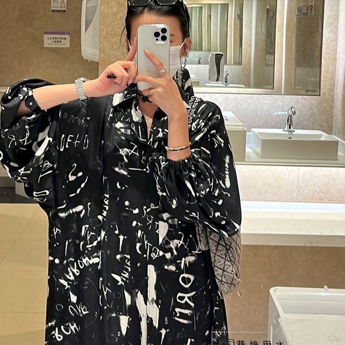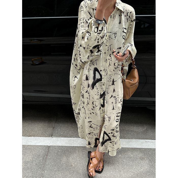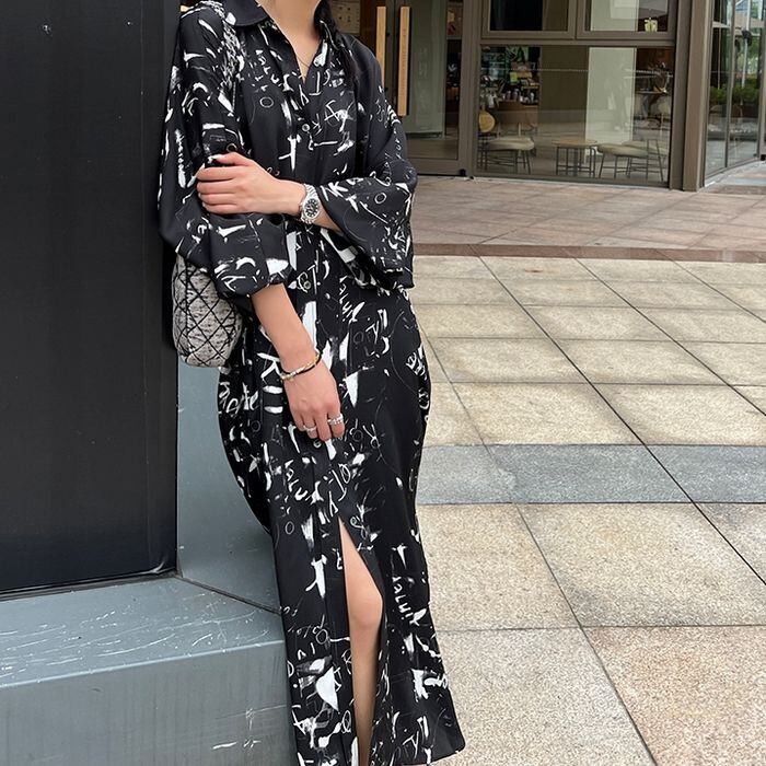 ワンピース シャツワンピ ロング 長袖 襟付き ビッグシルエット Aライン 薄手 かわいい 大人可愛い きれいめ カジュアル おしゃれ こなれ感 ラフ 個性的 ラブリー キュート グラフィック プリント 春 夏 秋 OL 学生 学校 通学 デート お出かけ お泊まり イベント リゾート 旅行 海 公園 女子会 休日 バカンス ホテル ガーデン ショッピング ライブ 合コン コーデ プレゼント 普段使い 着回し インスタ映え レディース フリーサイズ ブラック ホワイト