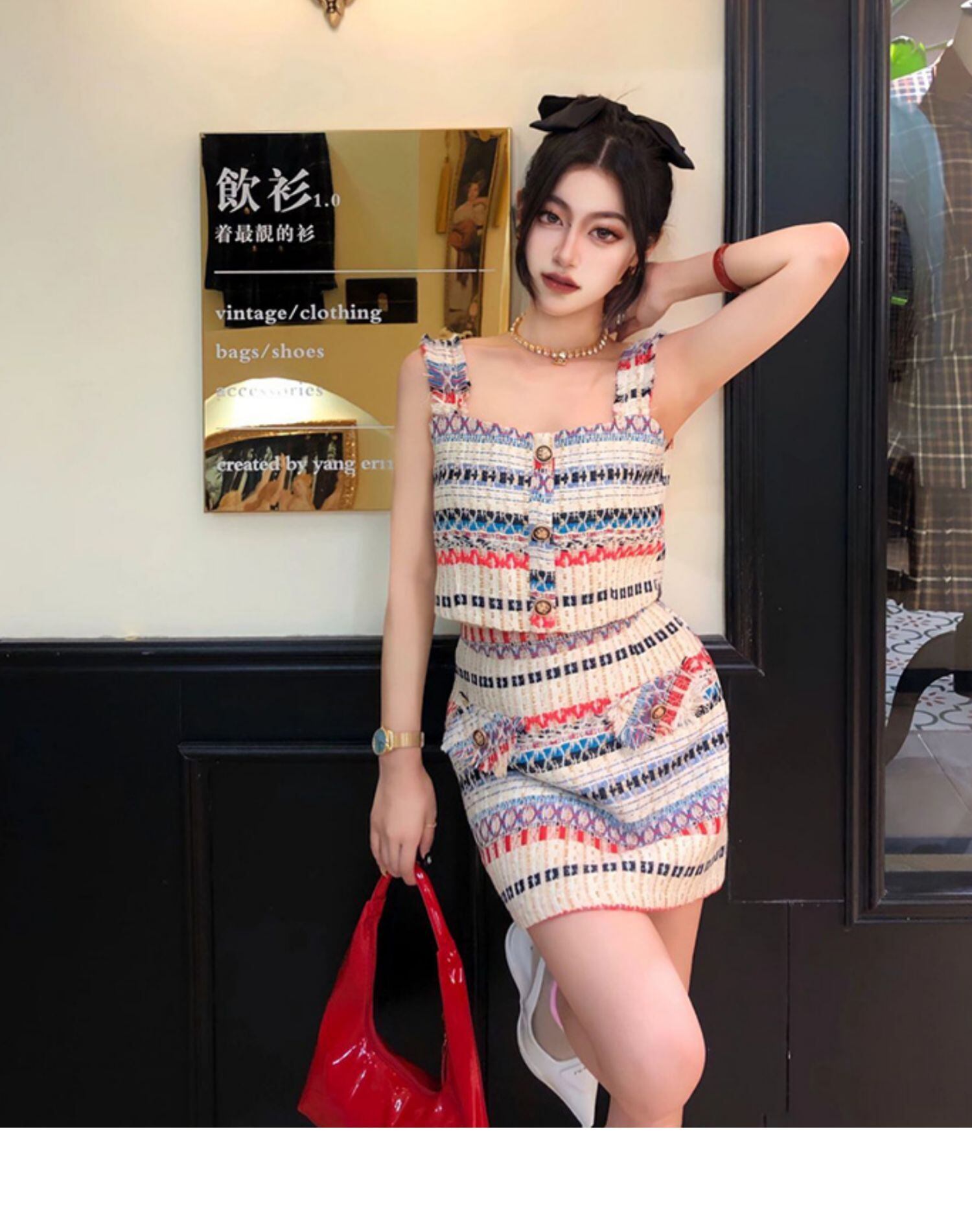 レディース トップス スカート ミニスカート ミニ ミニ丈 袖なし ノースリーブ スリム タイト 細身 上下セット 2点セット ツーピース かわいい きれいめ おしゃれ お洒落 こなれ感 ラブリー キュート ガーリー 個性的 主役級 存在感 チェック柄 ドット柄 ボーダー ストライプ ボタニカル 夏 10代 20代 女性用 デート お出かけ 女子会 お泊まり イベント リゾート 着回し 韓国系 ファッション スタイル モテ 美脚 脚長 サイズ S M L 白 赤 イエロー パステルカラー バイカラー
