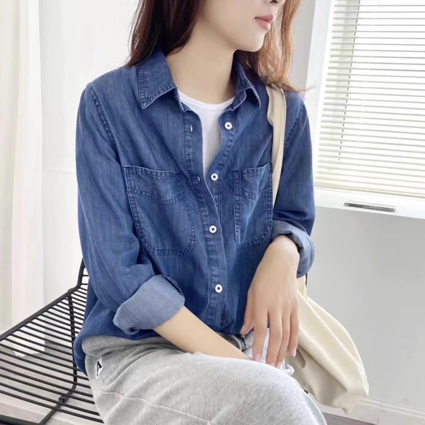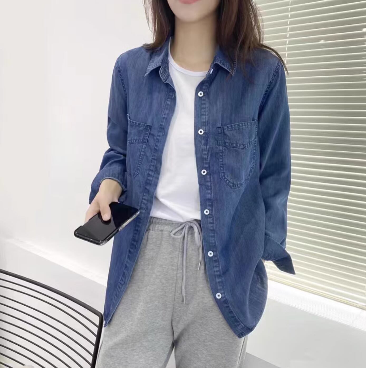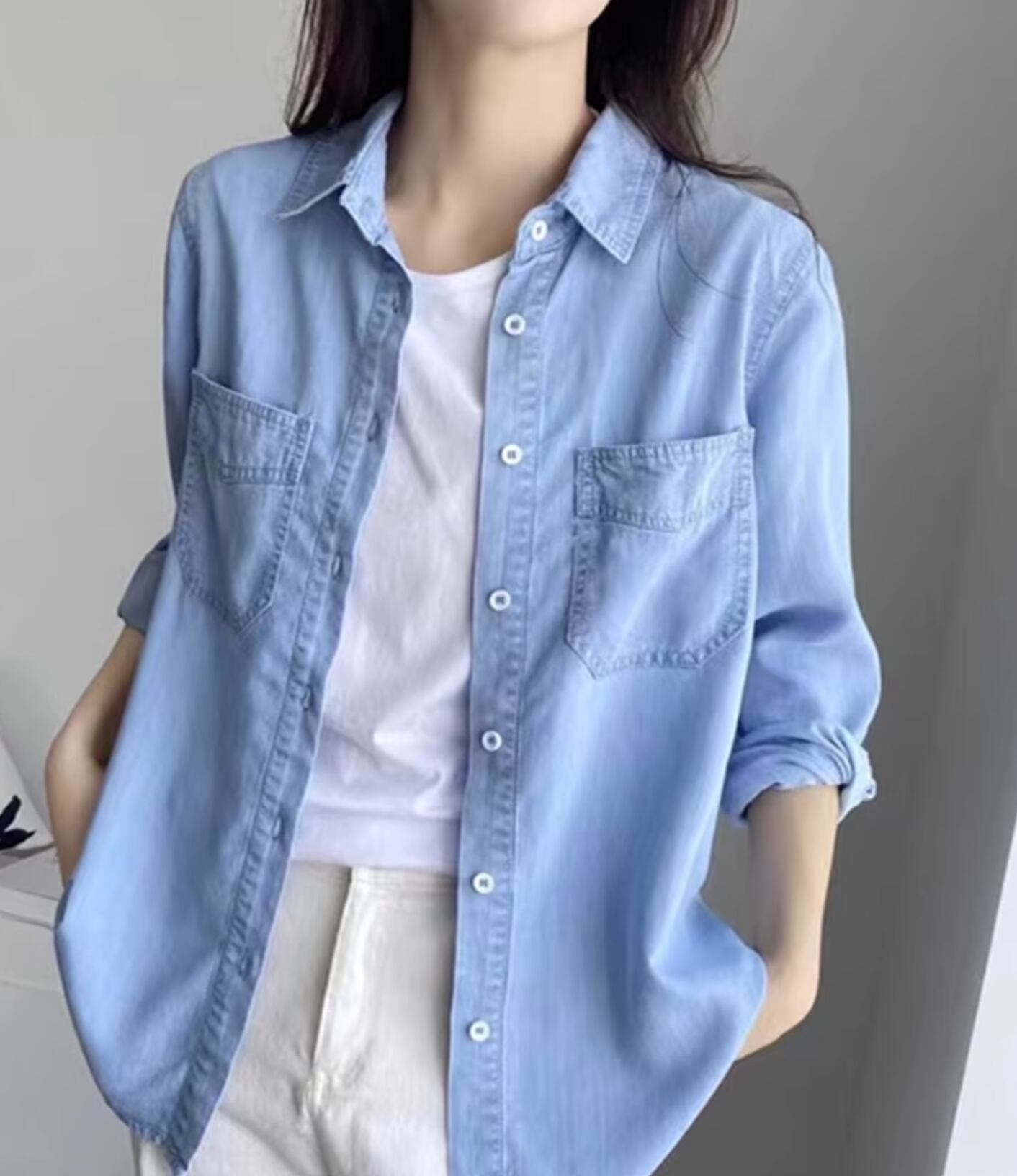 デニム風でオールシーズン着られる便利なアイテムです。