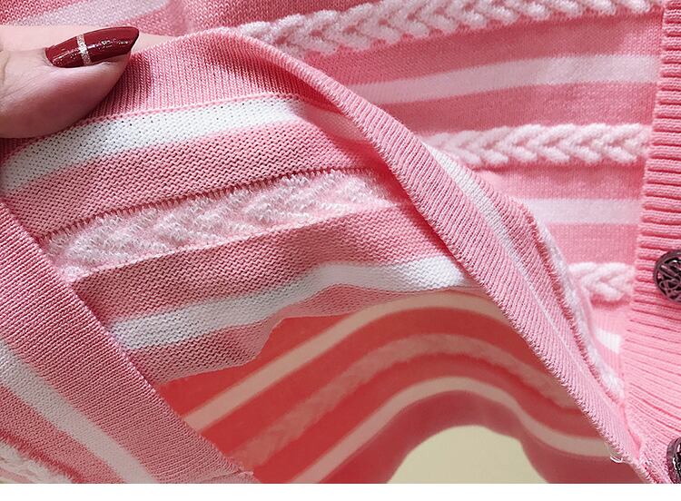 ユニークな切り替えデザインが特徴のサマーニット。