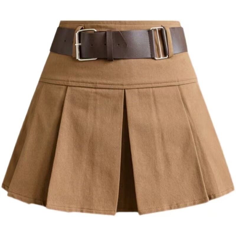 レディース スカート ミニスカート ミニ ミニ丈 ショート ショート丈 セミフレア タイト 細身 プリーツ ベルト 綿 ポリエステル かわいい カジュアル おしゃれ お洒落 ボーイッシュ スポーティー 主役級 存在感 無地 オールシーズン シーズンレス 入学式 卒業式 10代 20代 女性用 学生 通学 デート 着回し 普段使い 韓国 韓国系 ファッション 流行 インスタ映え サイズ XS S M L XL 2XL 小さいサイズ 大きめ ビッグサイズ 色展開 黒 ブラック 茶色 ブラウン ベージュ