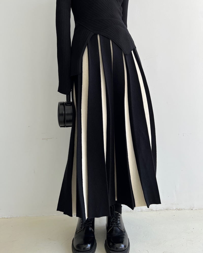プリーツスカートのフレアデザインで、ロング丈とAラインのシルエットが美しさを引き立てます。カジュアルからきれいめのスタイルまで、幅広いコーディネートに対応できます。