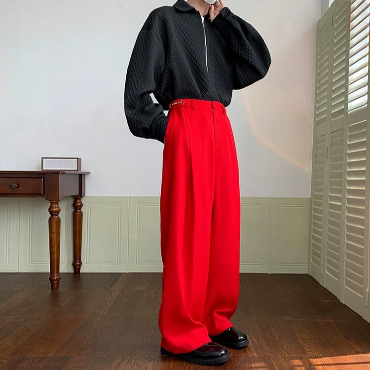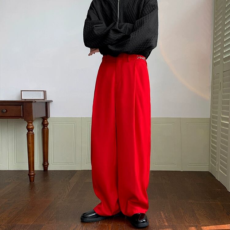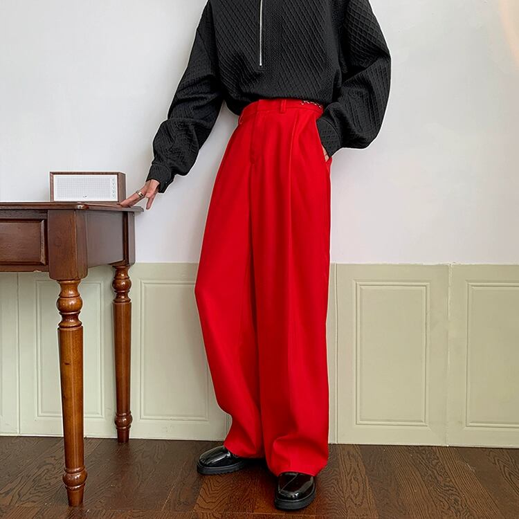 メンズ 個性的 ボトムス ワイドパンツ ストレートパンツ カラーパンツ ロング ロング丈 ストレート ワイド ウエストマーク きれいめ シンプル 大人 上品 おしゃれ お洒落 かっこいい レトロ こなれ感 ラフ クール モード系 主役級 存在感 無地 10代 20代 30代 男性用 通勤 学生 通学 お出かけ 休日 パーティー イベント 旅行 着回し 普段使い 重ね着 韓国 韓国系 ファッション コーデ スタイル 楽ちん 脚長 インスタ映え M L XL 2XL 黒 ブラック 赤 レッド ゆったり ゆる