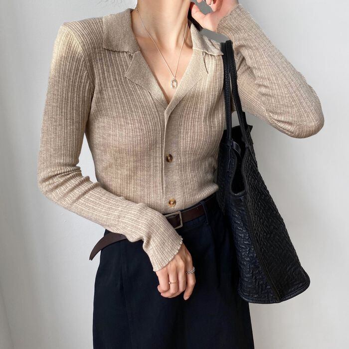レディース トップス カットソー ニット セーター フロントボタン ショート 長袖 襟付 タイト スリム 細身 無地 リブニット ニット リブニット かわいい 大人可愛い きれいめ シンプル カジュアル こなれ感 ラフ ガーリー 主役級 存在感 抜け感 ラブリー キュート バイカラー 春 夏 秋 学生 学校 通学 デート お出かけ 女子会 休日 合コン 韓国 オルチャン コーデ 普段使い 着回し モテ フリーサイズ ワンサイズ ホワイト ベージュ ブラウン ネイビー ブラック