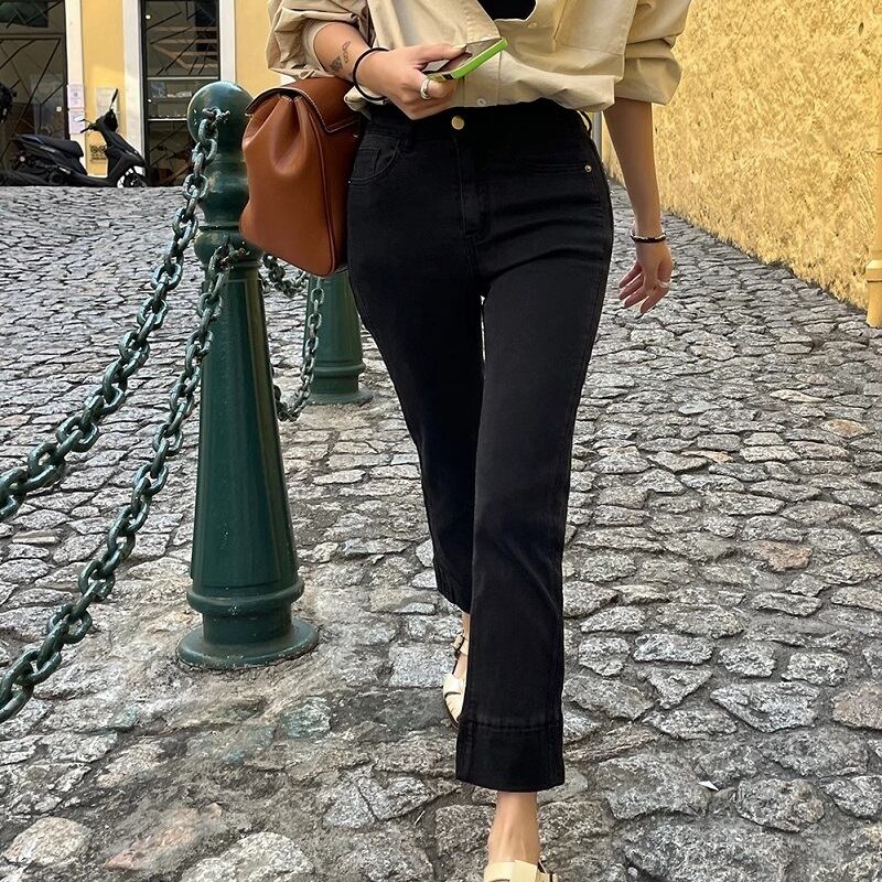 デニム素材で作られた9分丈のストレートパンツ。ハイウエストデザインで、ボーイッシュな雰囲気を演出してくれます。シンプルでカジュアルなデザインなので、どんなコーディネートにも合わせやすく、こなれ感を出してくれます。柔らかく伸縮性のある素材で、美脚効果も期待できます。普段使いからアウトドアまで、様々なシーンで活躍するアイテムです。ショッピングやイベント、お出かけなど、どんな時でも楽ちんにお洒落を楽しめます。サイズ展開もあり、S〜XLまで揃っているので、ご自身のサイズに合わせてお選びください。