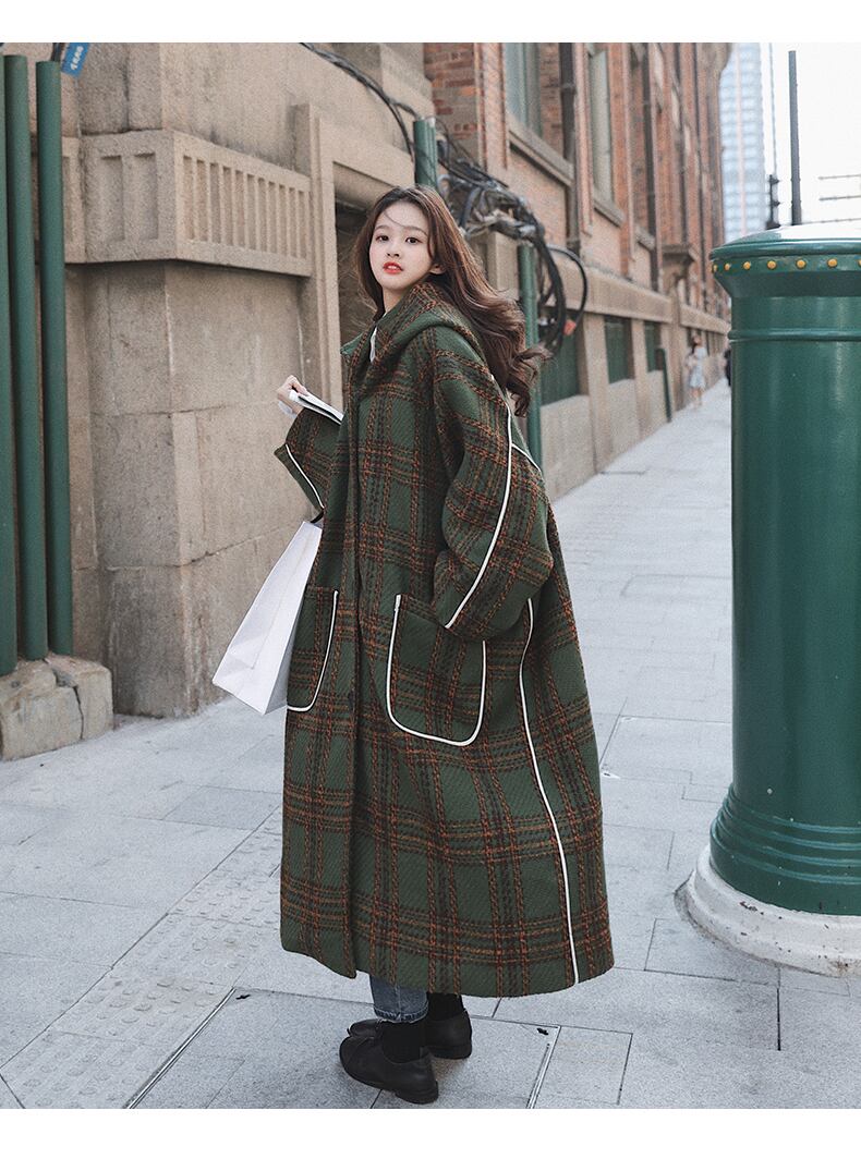 個性的 レディース アウター コート シャンパー 上着 ロングコート ロング ロング丈 袖あり 長袖 スリム ストレート フード付き ポケット 前開き ウール 厚手 かわいい 大人可愛い シンプル カジュアル お洒落 大人女子 メンズライク ボーイッシュ キュート ガーリー ルーズ 抜け感 柄 チェック柄 冬 10代 20代 女性用 オフィス ビジネス デート お出かけ お泊まり イベント ホテル 普段使い ファッション スタイル 楽ちん 体系カバー インスタ映え S M L XL ゆったり 緑 グリーン