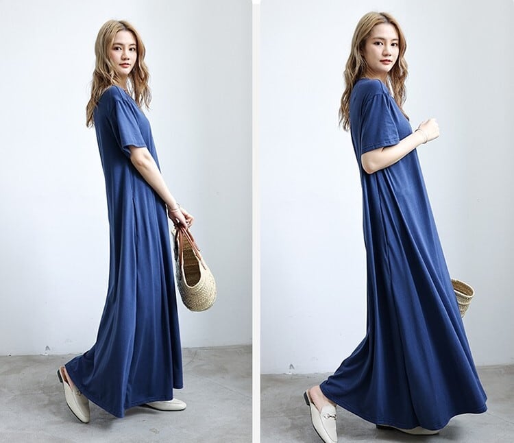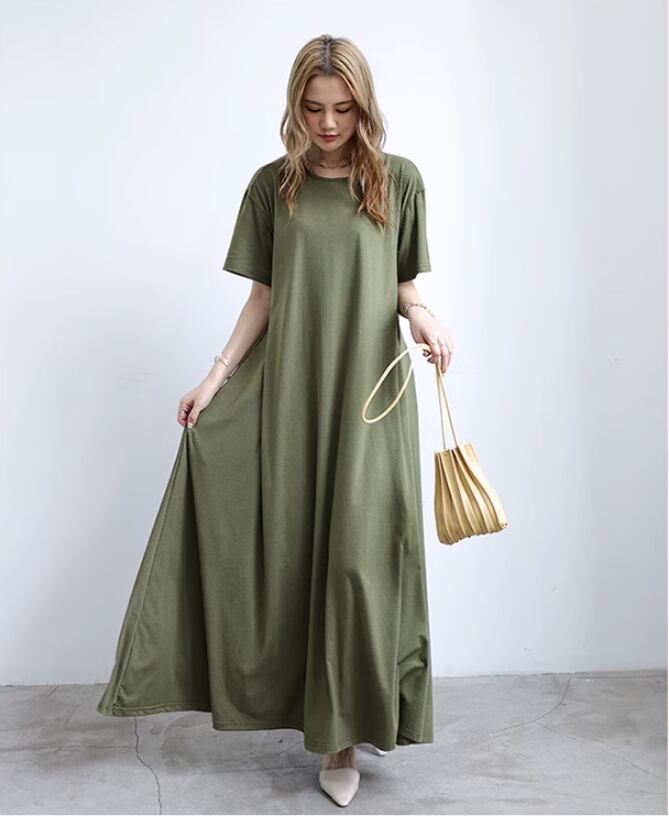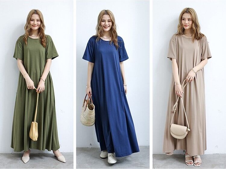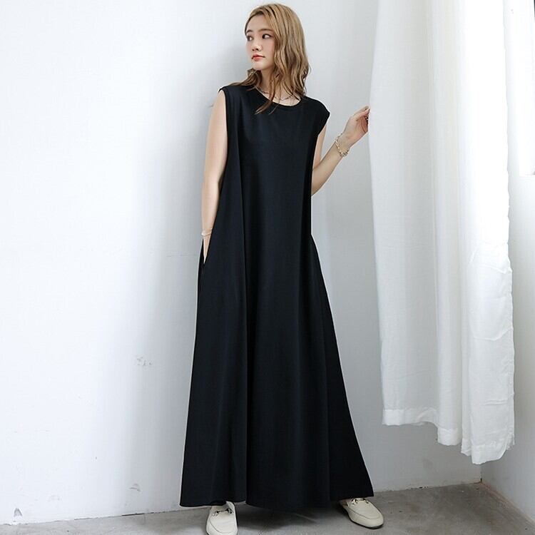 ワンピース ロング丈ワンピース 大きいサイズ 半袖 ノースリーブ ラウンドネック ロングスカート ゆる ゆったり ロング マタニティ 夏 プルオーバー 無地 レディース スカート 襟なし ワイド Aライン かわいい 大人可愛い シンプル こなれ感 ラフ ガーリー ルーズ 抜け感 キュート ナチュラル お出かけ リゾート 旅行 海 ビーチ 公園 休日 ショッピング コーデ 楽ちん 体型カバー 普段使い 着回し モテ トレンド M L XL 黒 ブラック グレー サファイア アーミーグリーン コーヒー カーキ