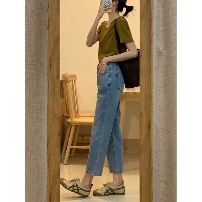 ボトムス ジーンズ デニムパンツ クロップドパンツ テーパード 細身 デニム ブルーデニム カラーデニム カジュアル おしゃれ お洒落 10代 20代 30代 レディース デート お出かけ 普段使い 体系カバー 美脚 脚長 ハイウエスト S M L XL 青 ブルー