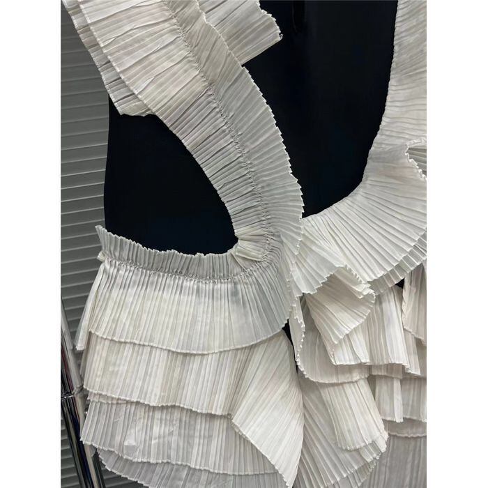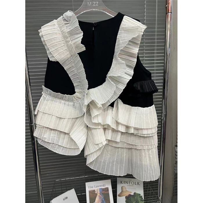 レディース トップス アシンメトリー フリル プリーツ アシンメトリー プルオーバー ノースリーブ 襟なし ノーカラー ティアード かわいい 大人可愛い きれいめ シンプル カジュアル こなれ感 ラフ ガーリー ルーズ 主役級 存在感 抜け感 ラブリー キュート 無地 春 夏 秋 学生 学校 通学 デート お出かけ 女子会 休日 合コン 韓国 オルチャン コーデ 普段使い 着回し モテ S M ブラック