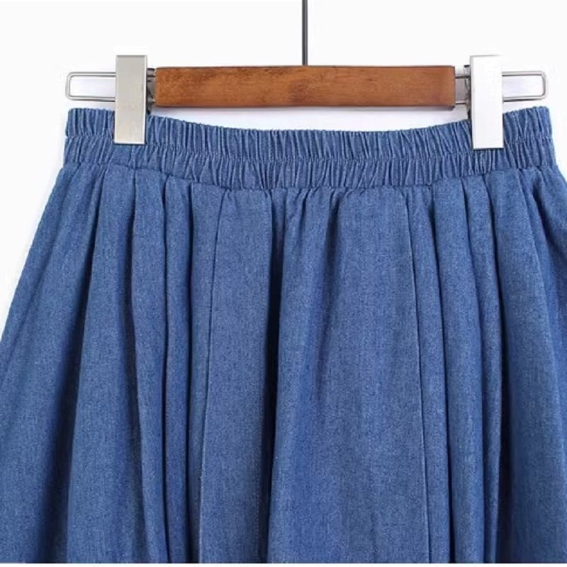レディース スカート フレア デニムスカート Aライン プリーツ ウエストゴム デニム かわいい 大人可愛い きれいめ シンプル カジュアル おしゃれ レトロ こなれ感 ラフ ガーリー ルーズ 個性的 抜け感 ラブリー キュート 無地 グラデーション オールシーズン OL 通勤 学生 学校 通学 デート お出かけ お泊まり パーティー イベント 旅行 公園 女子会 休日 バカンス ホテル ショッピング コンサート ライブ 合コン プレゼント 体型カバー 着回し インスタ映え フリーサイズ ブラック ブルー