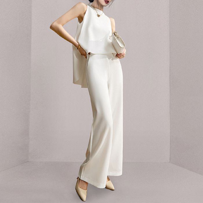 レディース セットアップ トップス パンツ ベスト ズボン スーツ ストレートパンツ ノースリーブ スリム タイト ストレート ポケット 前開き 上下セット ツーピース かわいい 大人可愛い きれいめ シンプル 大人 上品 こなれ感 個性的 セクシー エレガント フォーマル とろみ感 抜け感 無地 春 夏 秋 謝恩会 二次会 20代 30代 40代 女性用 ビジネス OL お出かけ イベント ホテル ガーデン レストラン ファッション 美脚 脚長 インスタ映え S M L XL 白 ホワイト