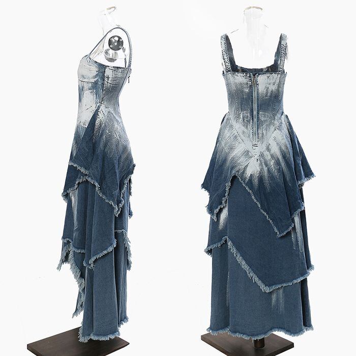 ワンピース デニムワンピース ノースリーブ 襟付き フレア Aライン アシンメトリー ティアードスカート デニム かわいい きれいめ シンプル カジュアル 大人 上品 おしゃれ お洒落 大人可愛い 大人女子 こなれ感 キュート ガーリー 無地 春 夏 秋 10代 20代 30代 レディース 女性用 ママ 学生 通学 デート お出かけ 女子会 休日 ショッピング 着回し 普段使い ファッション コーデ スタイル モテ 体系カバー XS S M L XL ブルー