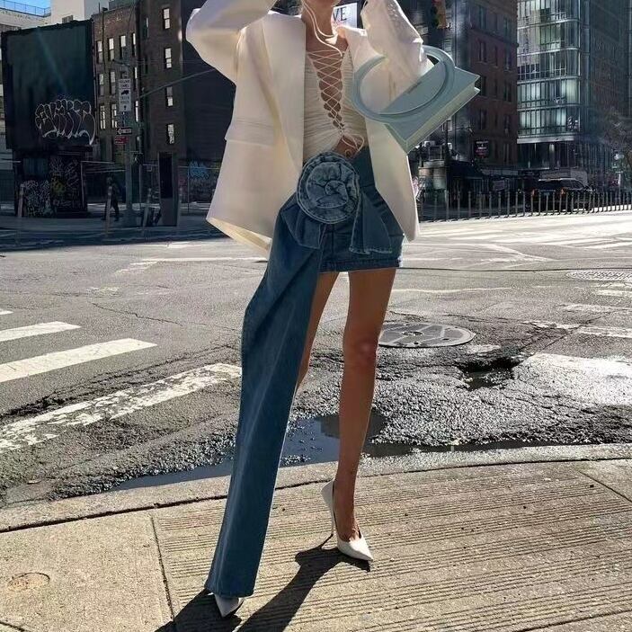 お洒落なコサージュ付きのデニムスカート!