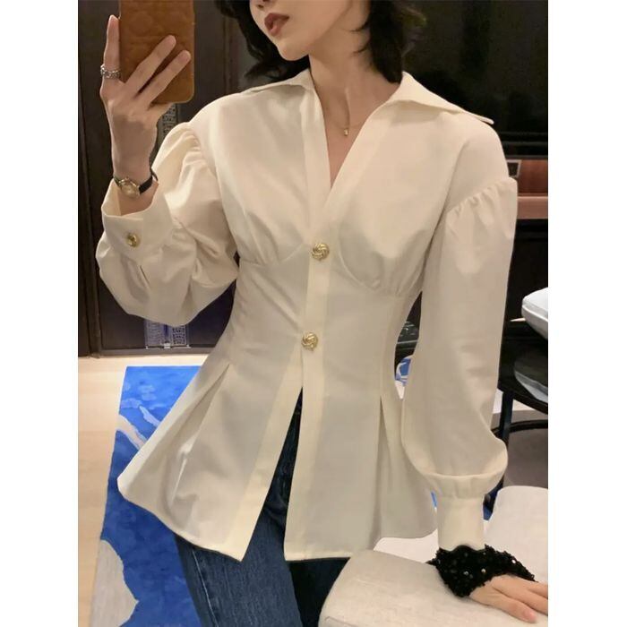 レディース トップス ブラウス ミドル丈 長袖 ペプラム ストレート 前開き かわいい 大人可愛い きれいめ シンプル カジュアル 上品 おしゃれ レトロ こなれ感 ラフ ガーリー 抜け感 ラブリー キュート 無地 春 夏 秋 学生 学校 通学 デート お出かけ 女子会 休日 ショッピング お花見 合コン コンパ 韓国 オルチャン コーデ 楽ちん 体型カバー 普段使い 着回し モテ 清楚 S M L ホワイト