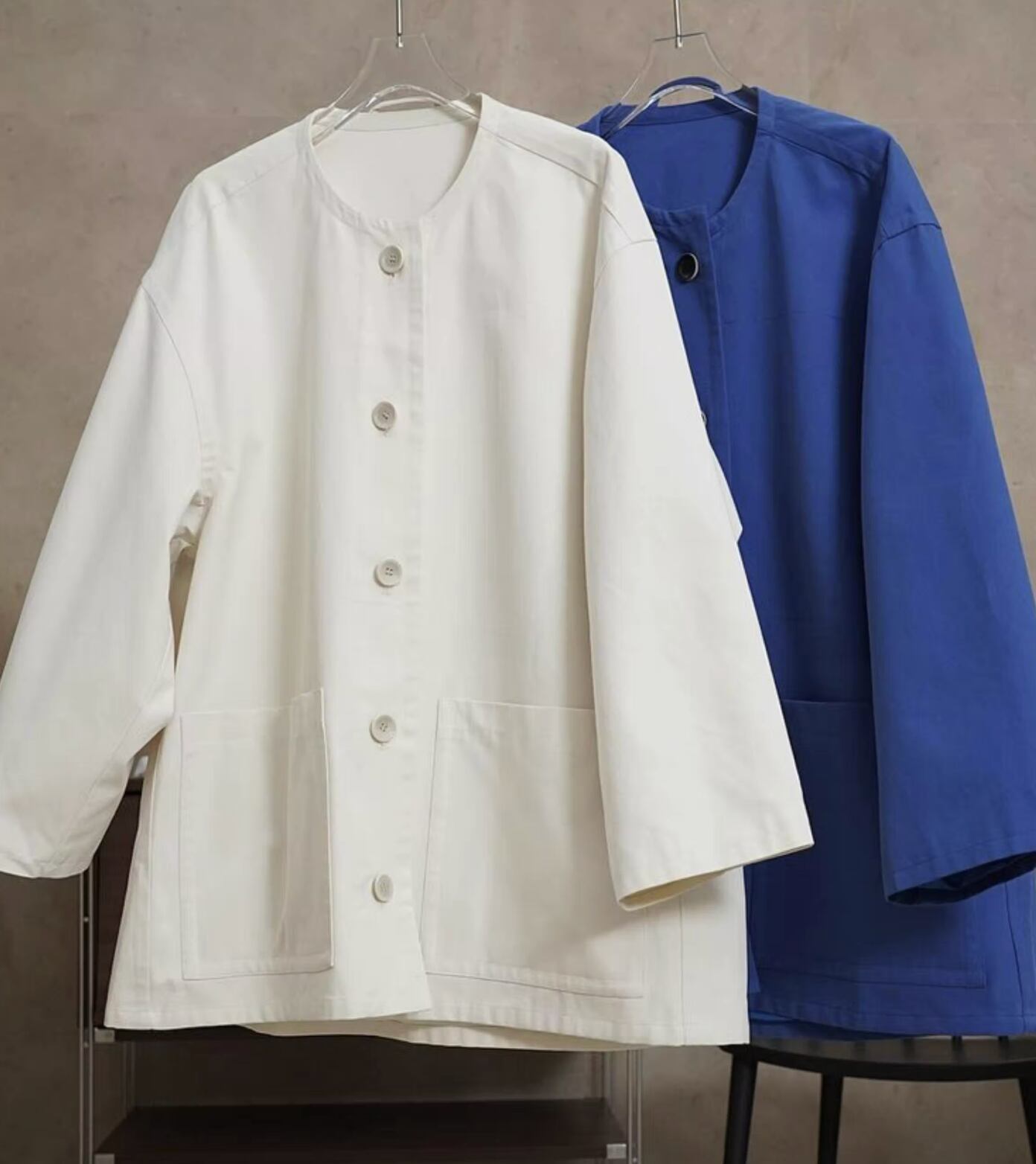 レディース コート 上着 羽織 前開き ウィンドブレーカー ミディアム ミドル丈 長袖 ラウンドネック ワイド ストレート ポケット ボタン 綿 かわいい 大人可愛い きれいめ シンプル カジュアル 上品 おしゃれ レトロ こなれ感 ラフ ガーリー クール 抜け感 キュート クラシカル フェニミン 無地 春 秋 ママ オフィス ビジネス OL 通勤 学生 学校 通学 デート お出かけ 休日 ショッピング お花見 カフェ コーデ 楽ちん 体型カバー 普段使い 着回し モテ S M ゆったり ゆる 白 青